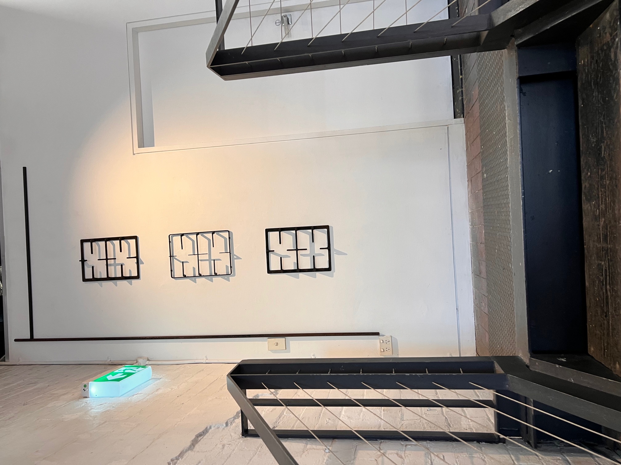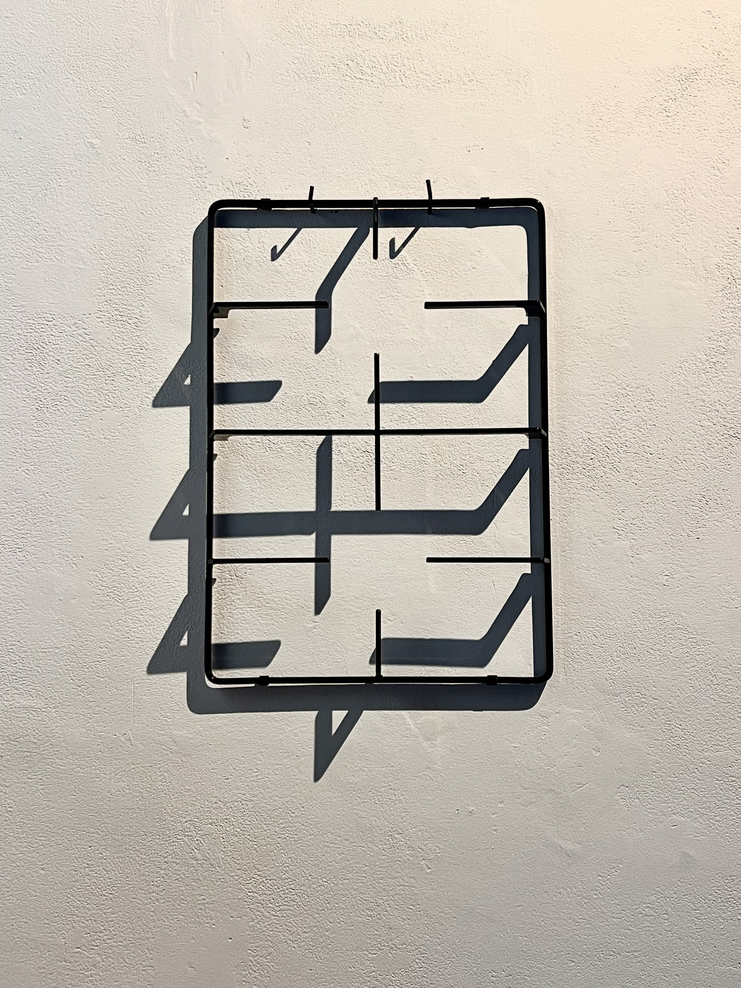 Materials: Found metal objects metal, cast shadows; dimensions: 1200HX 280W X 50mm D, 2025