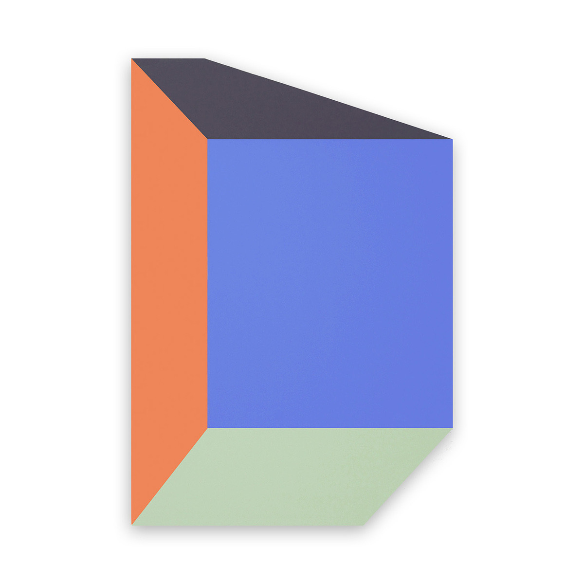Balloon IV transforms geometry into illusion. Crisp planes of colour—blue, terracotta, green, and grey—shift between painting and object, creating a buoyant, architectural form that hovers with weightless clarity and presence.