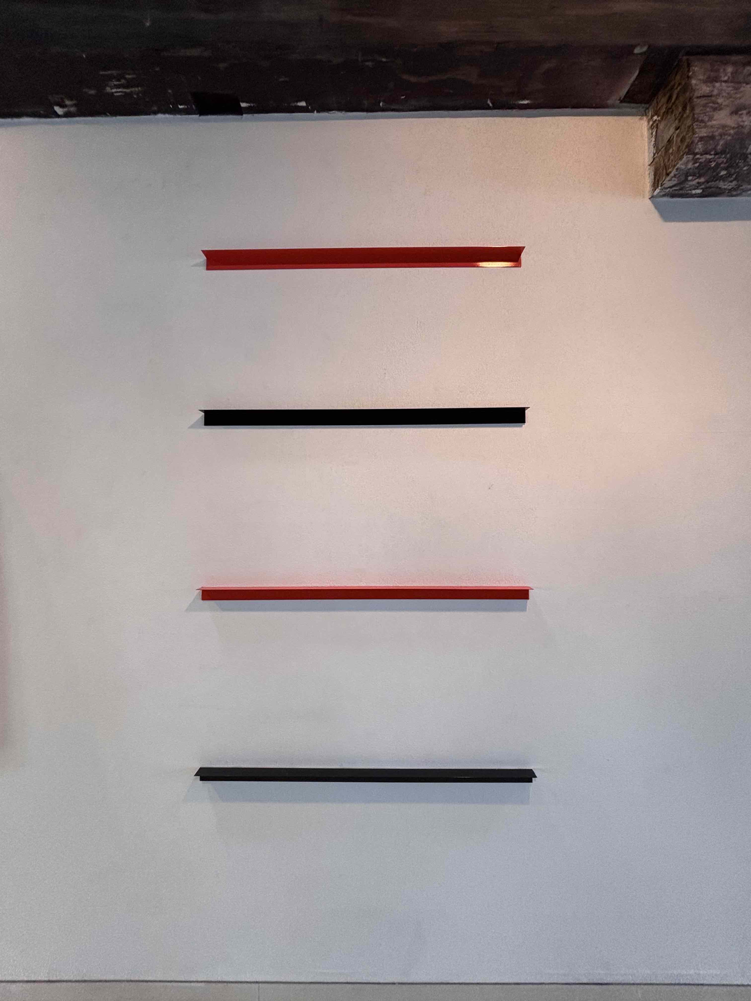 enamel on aluminium, 100 x 4 x 4cm each x 4 shelves