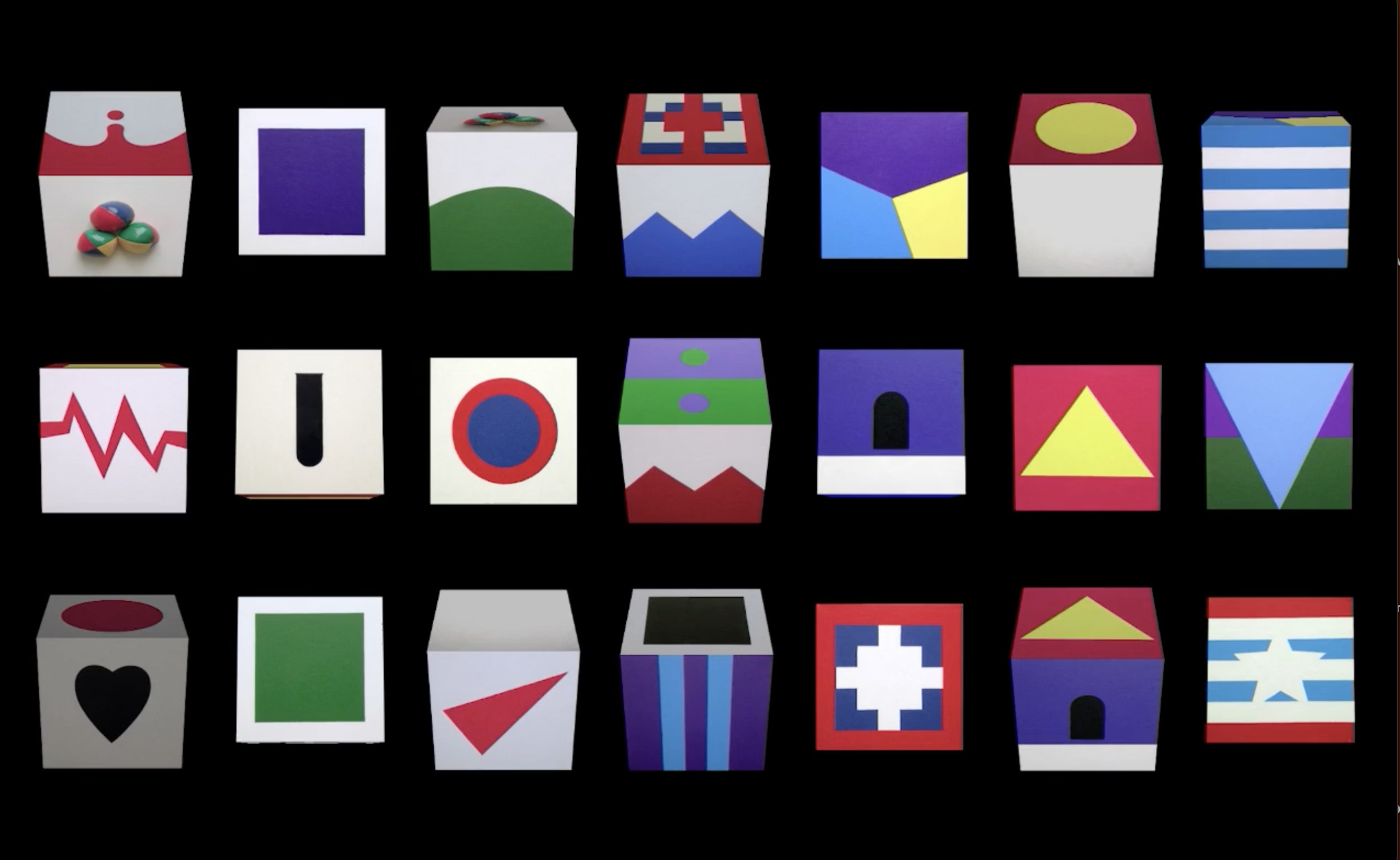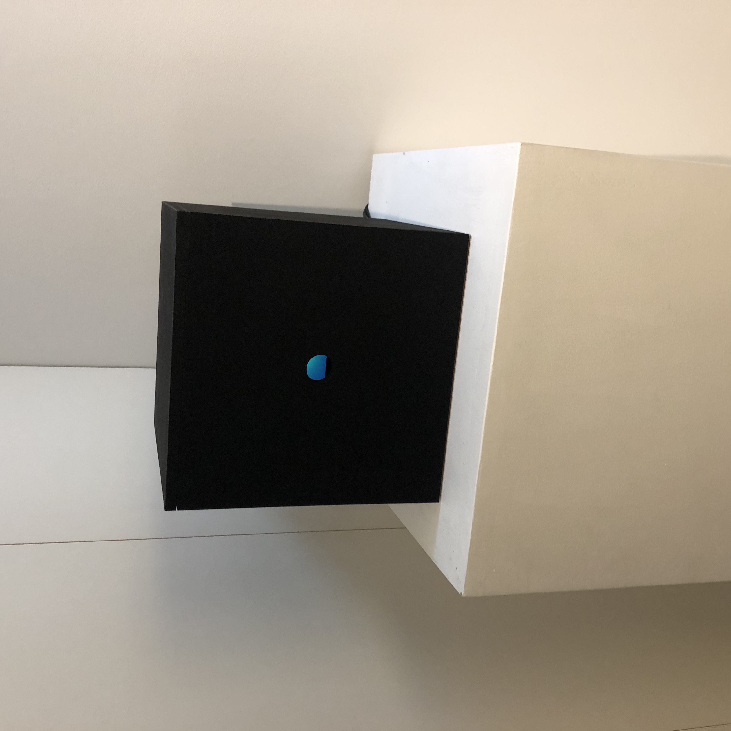 'The Blue Mountains (Close Up)': acrylic on canvas, 107 x 107 cm, 2014; 'Alien Song Part 1': SD video and black box, 31 x 31 x 31 cm, 2014-2025