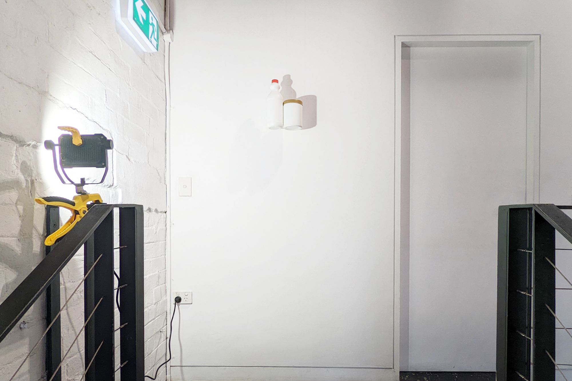 Over the years of showing at Articulate, I find myself choosing objects that are functional and recognisable and potentially belong to the space. I create a slight shift in their placement that so they merge with the surrounding architecture in such a way that disconnects them from their familiar reading. www.suecallanan.com