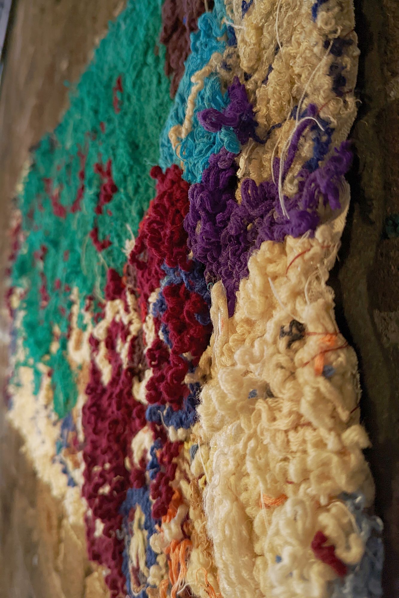 Framed panel of unraveled garment textile, 50 x 60cm
