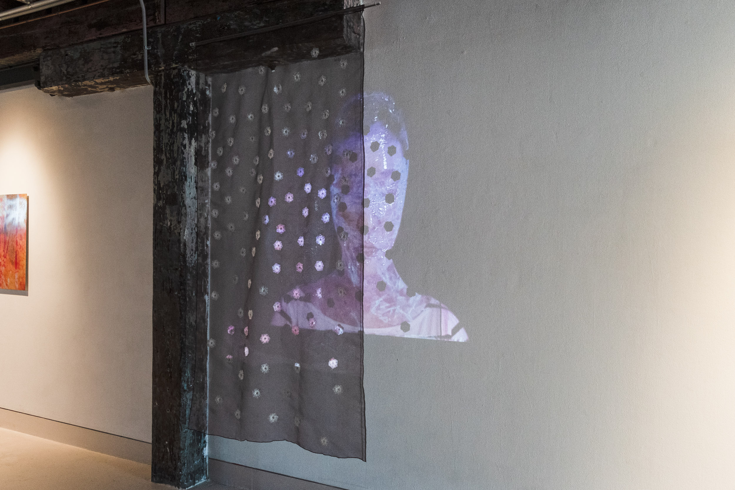 Installation with Video projection, Origami, and Organza (Dimension variable)