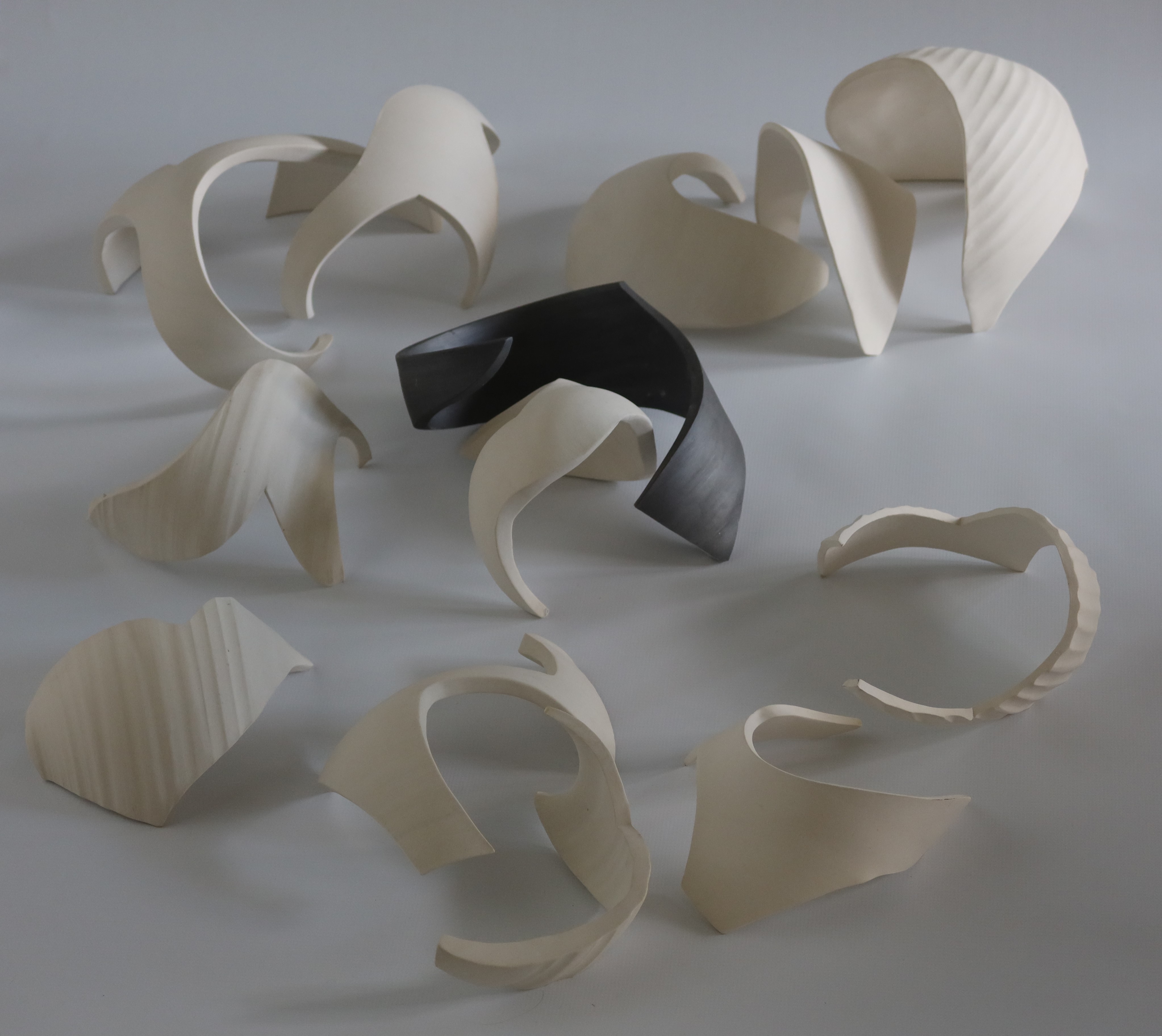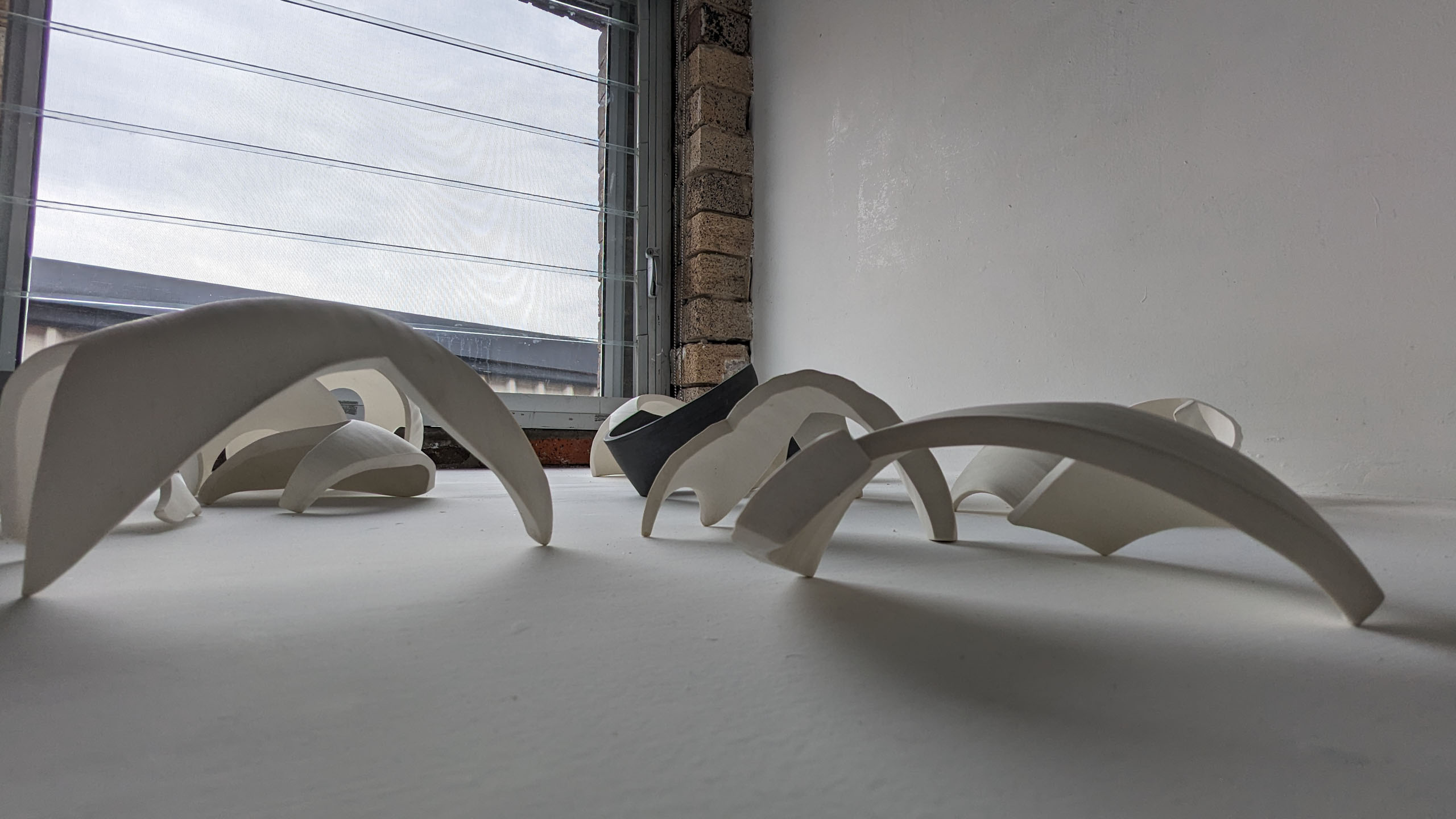 I am interested in working with porcelain (mostly), and find new meaning through various ways of deconstruction. Through these pieces, I imagine being a tiny creature who can look up, into and out of these structures of wondrous spaces.