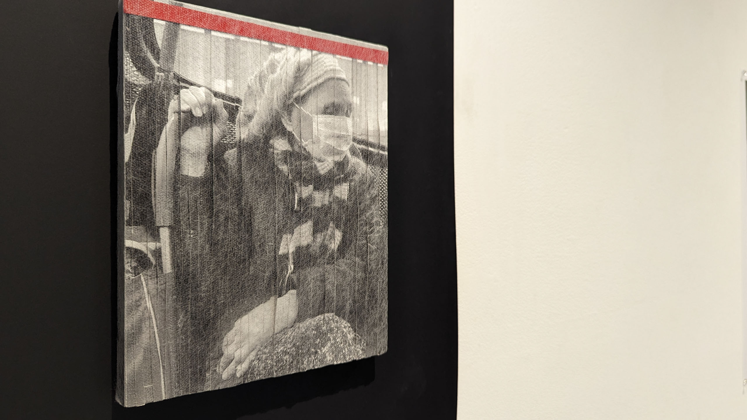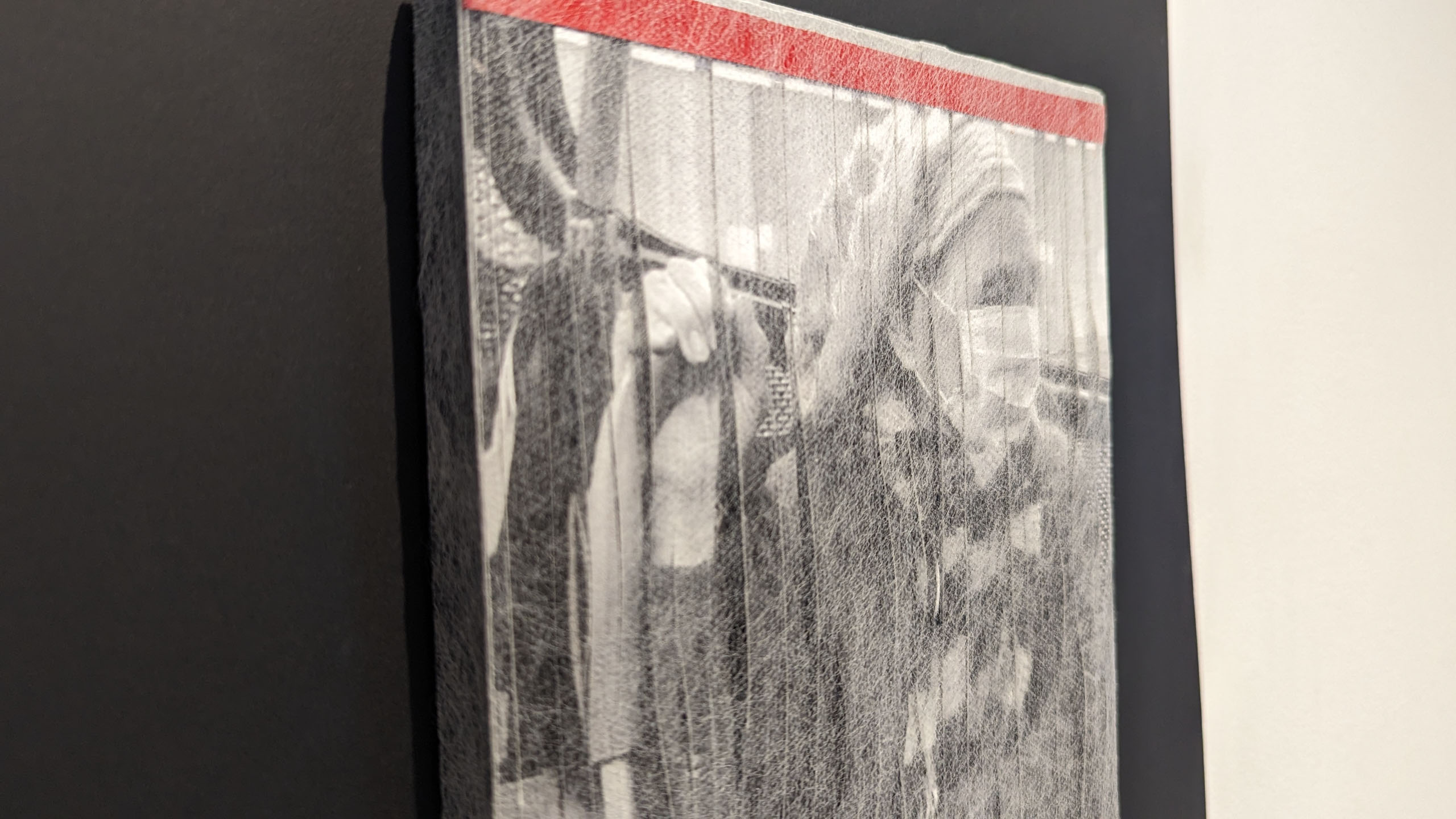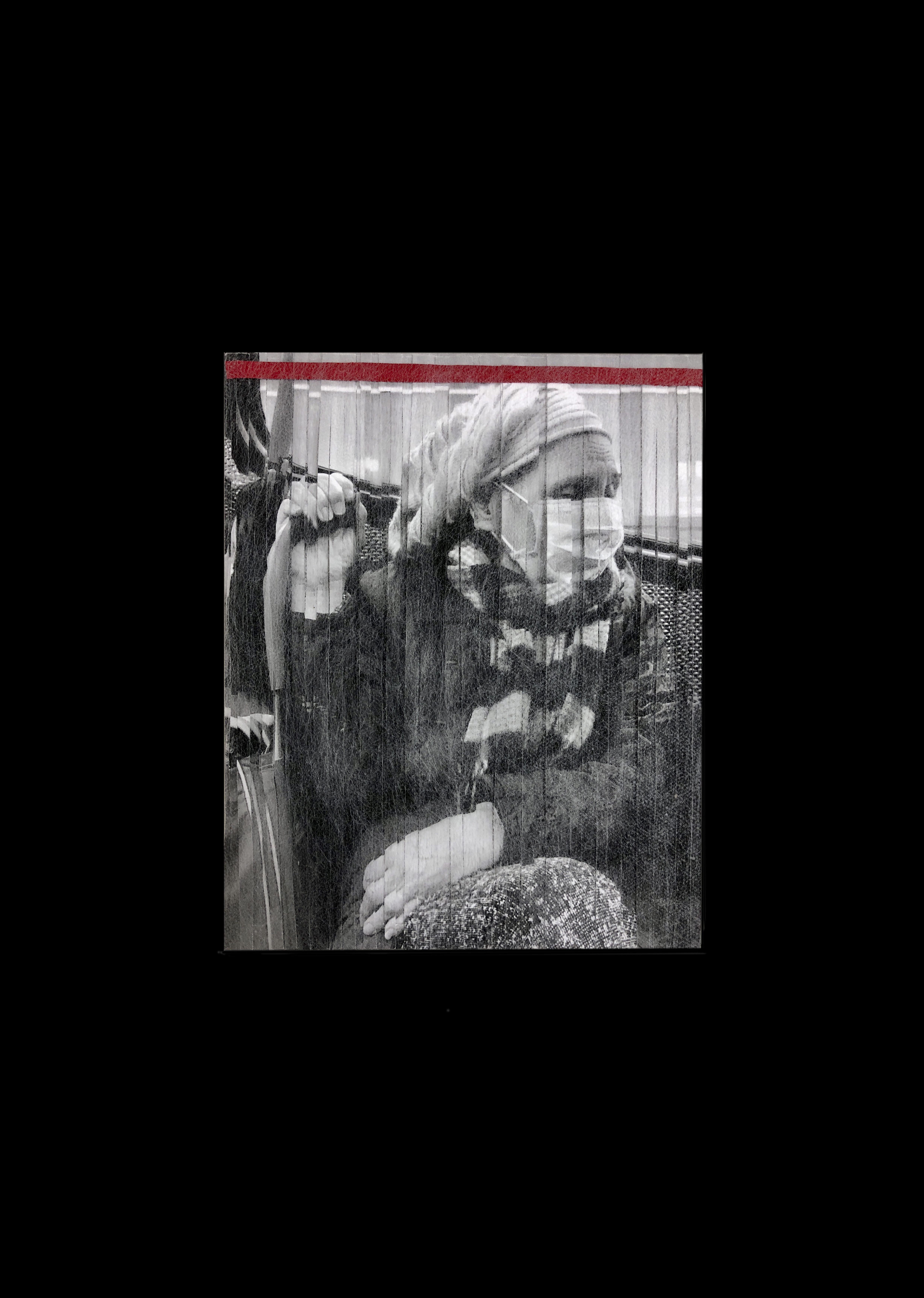 Traveller 1 -Jennifer O'Brien, 2023. Materials : 20x25cm Photo collage on board with mesh, 1000gsm black presentation board.