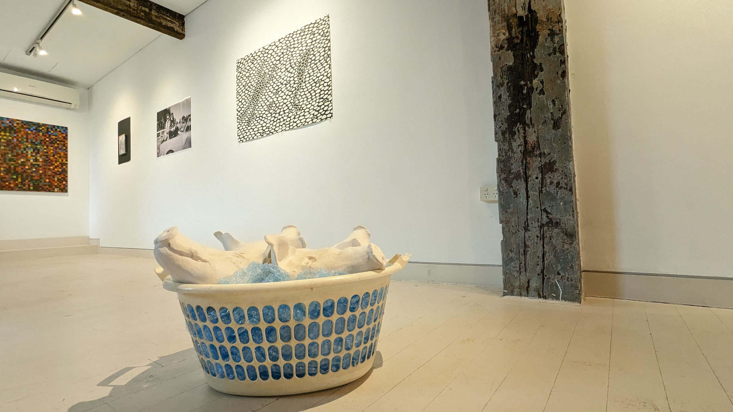 I use a broad range of mediums in my artworks – sculptural and found objects, still and moving images and networked media. For this work I’ve re-used a mould I made years ago. Recent group exhibitions include Fifty Skies (Annandale Galleries, 2023) and The Drawing Exchange (National Art School, 2022).