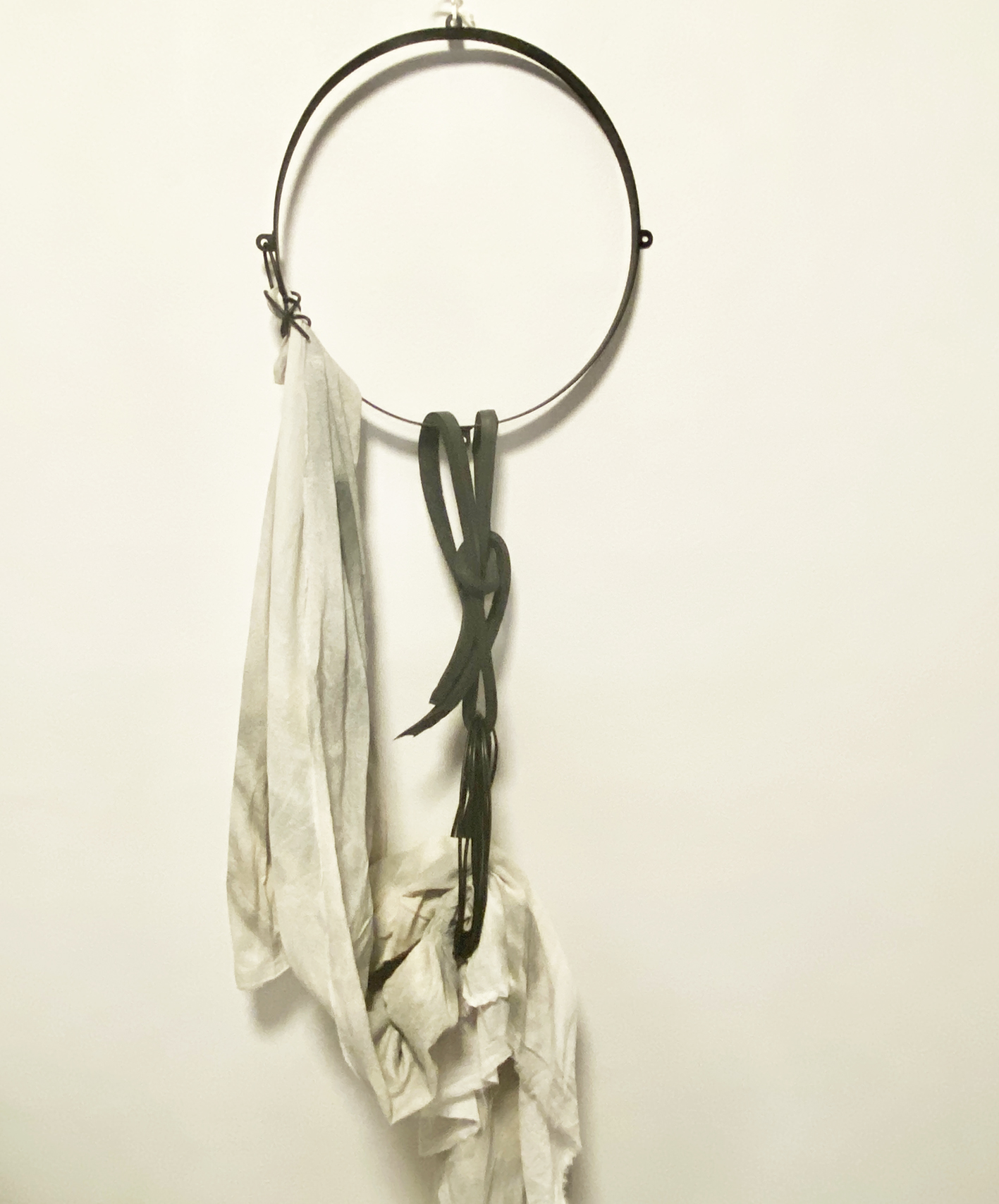 33 x 135cm, Acrylic on cotton, recycled rubber, recycled metal
