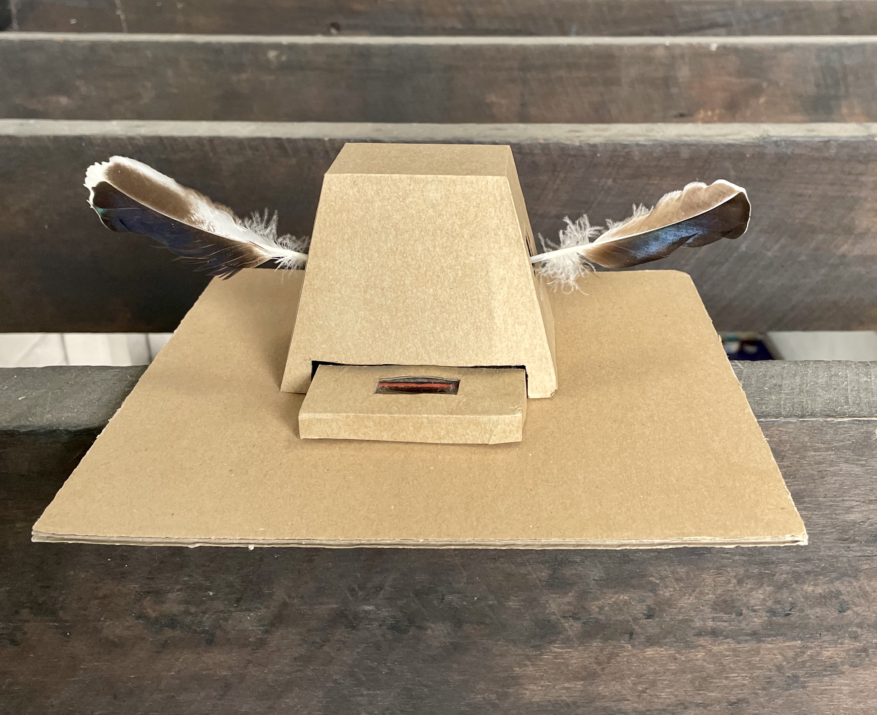 Solar device, feathers, cardboard. Dimensions variable