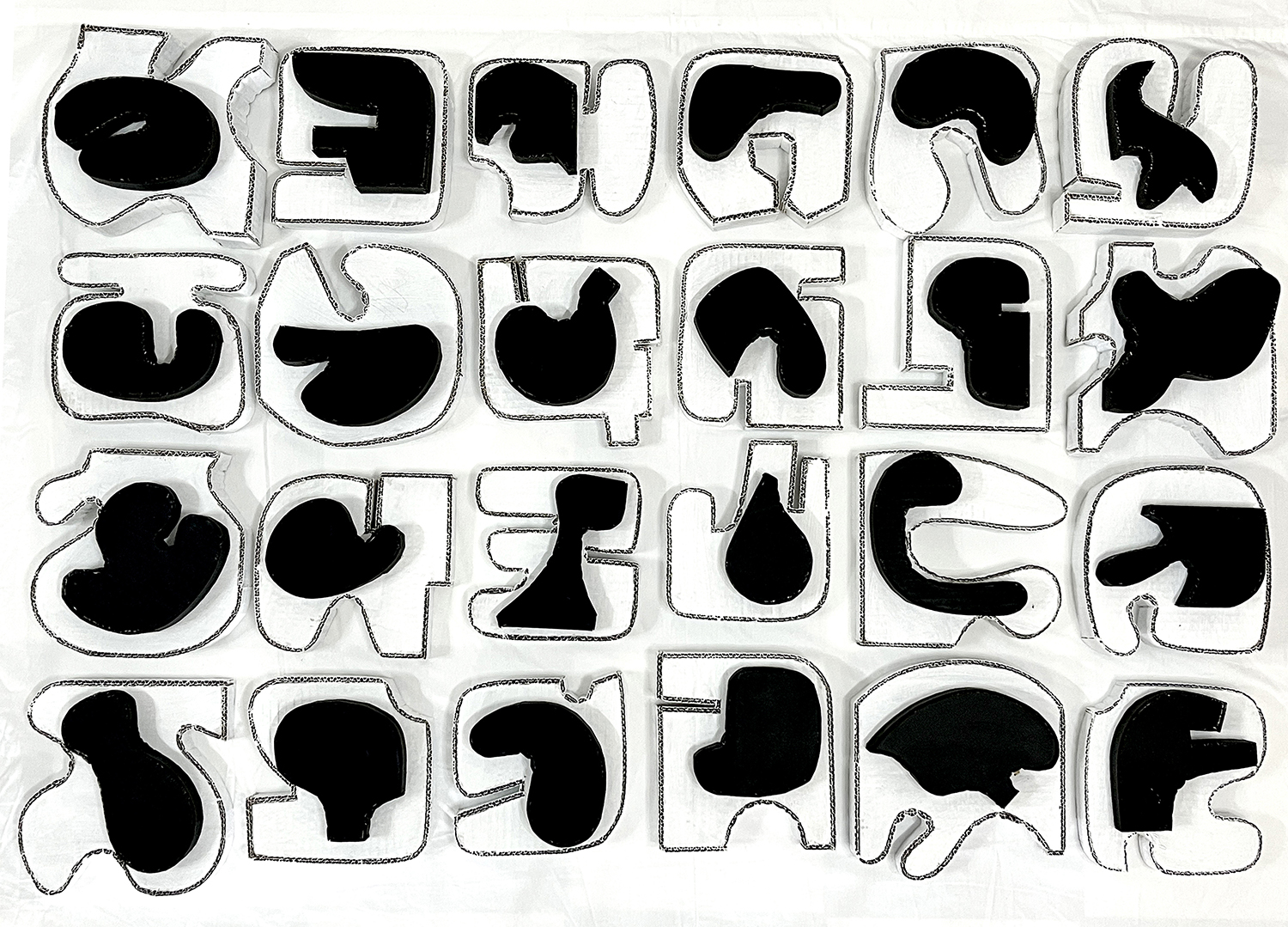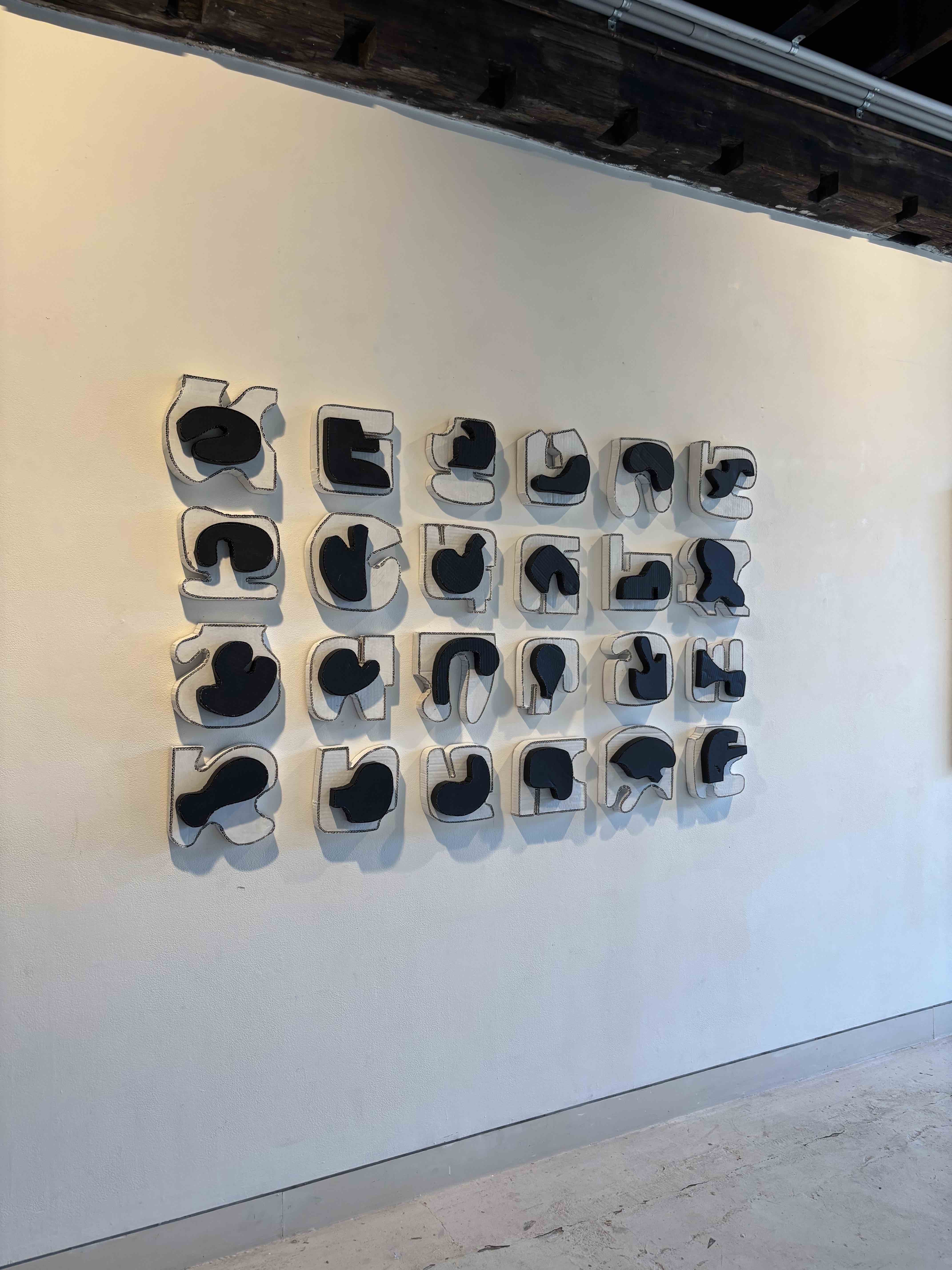 24 seperate pieces of acrylic and plaster on recycled cardboard, 1500x1200x60mm