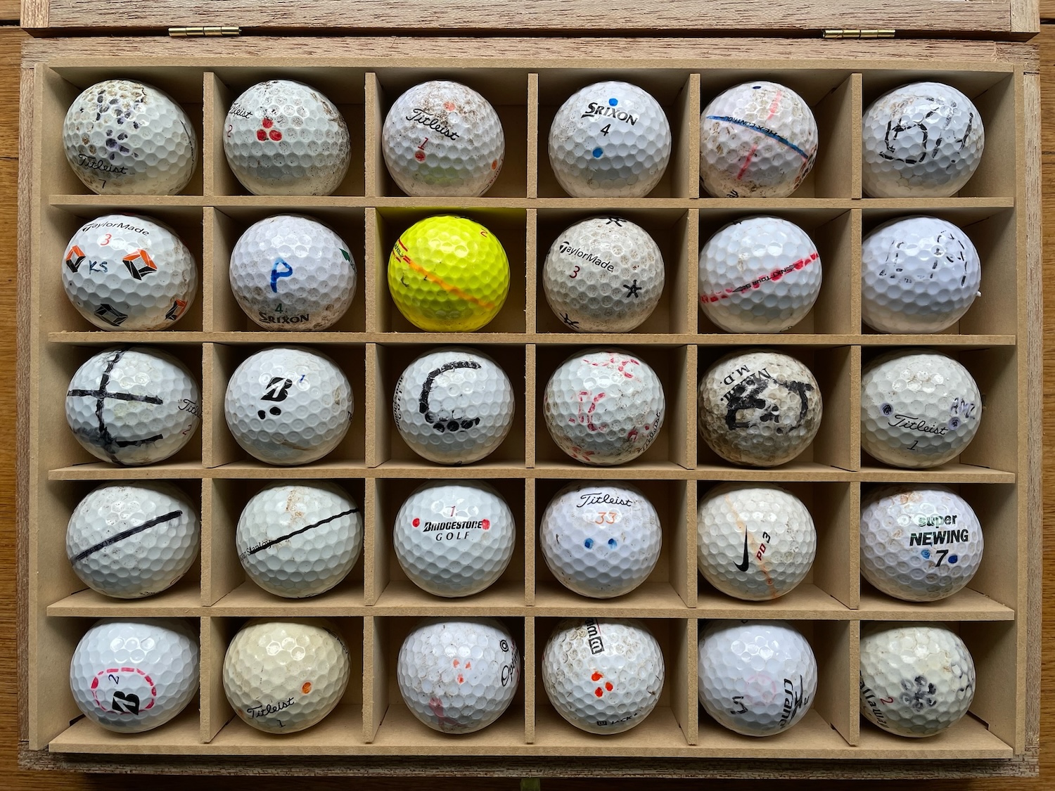 Slide box of golfballs, $350