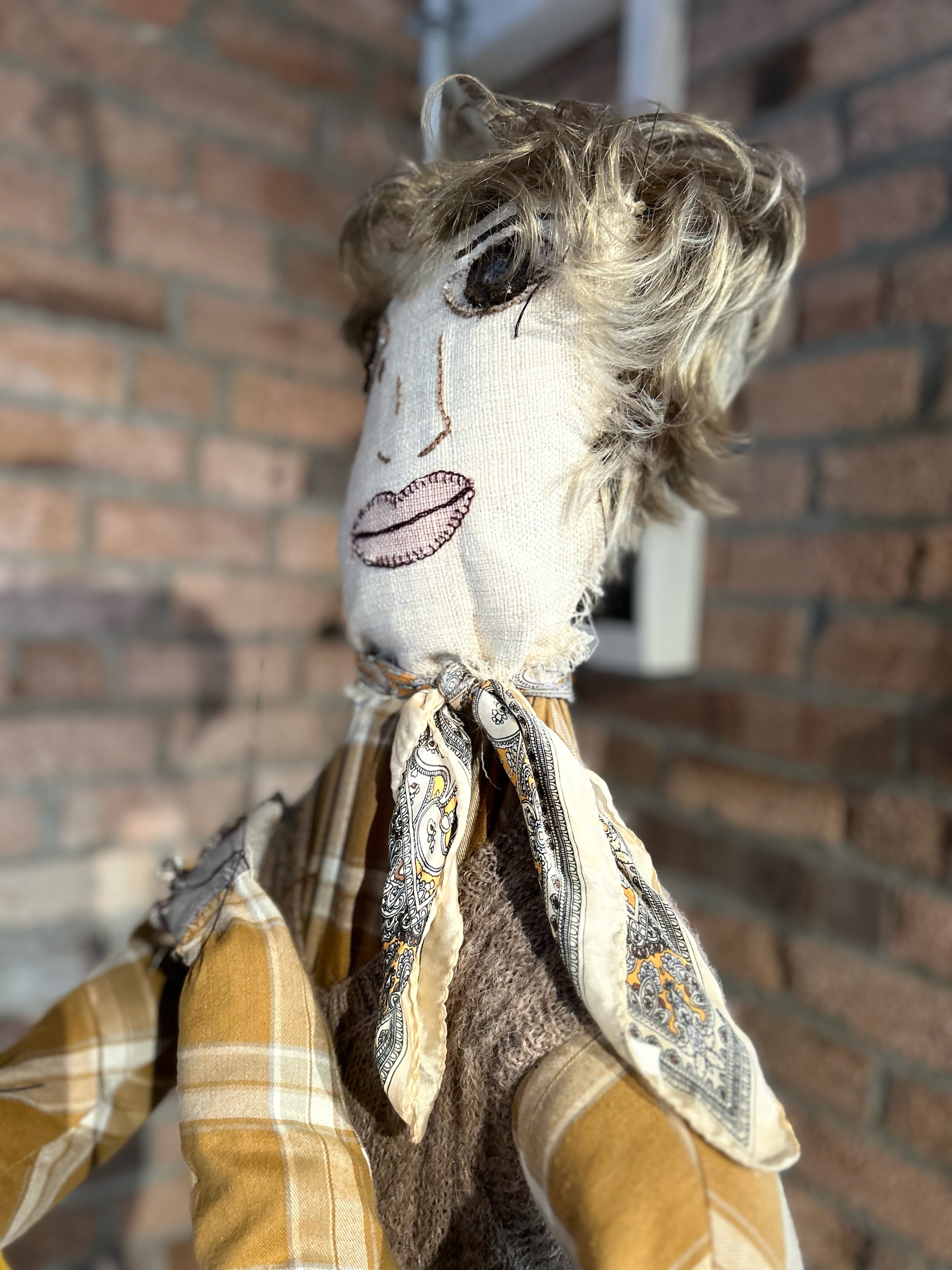 Found textiles with slow stitching. First produced for the Pollys Puppet Project as part of Arterie - Chris O'Brien Lifehouse, 2019