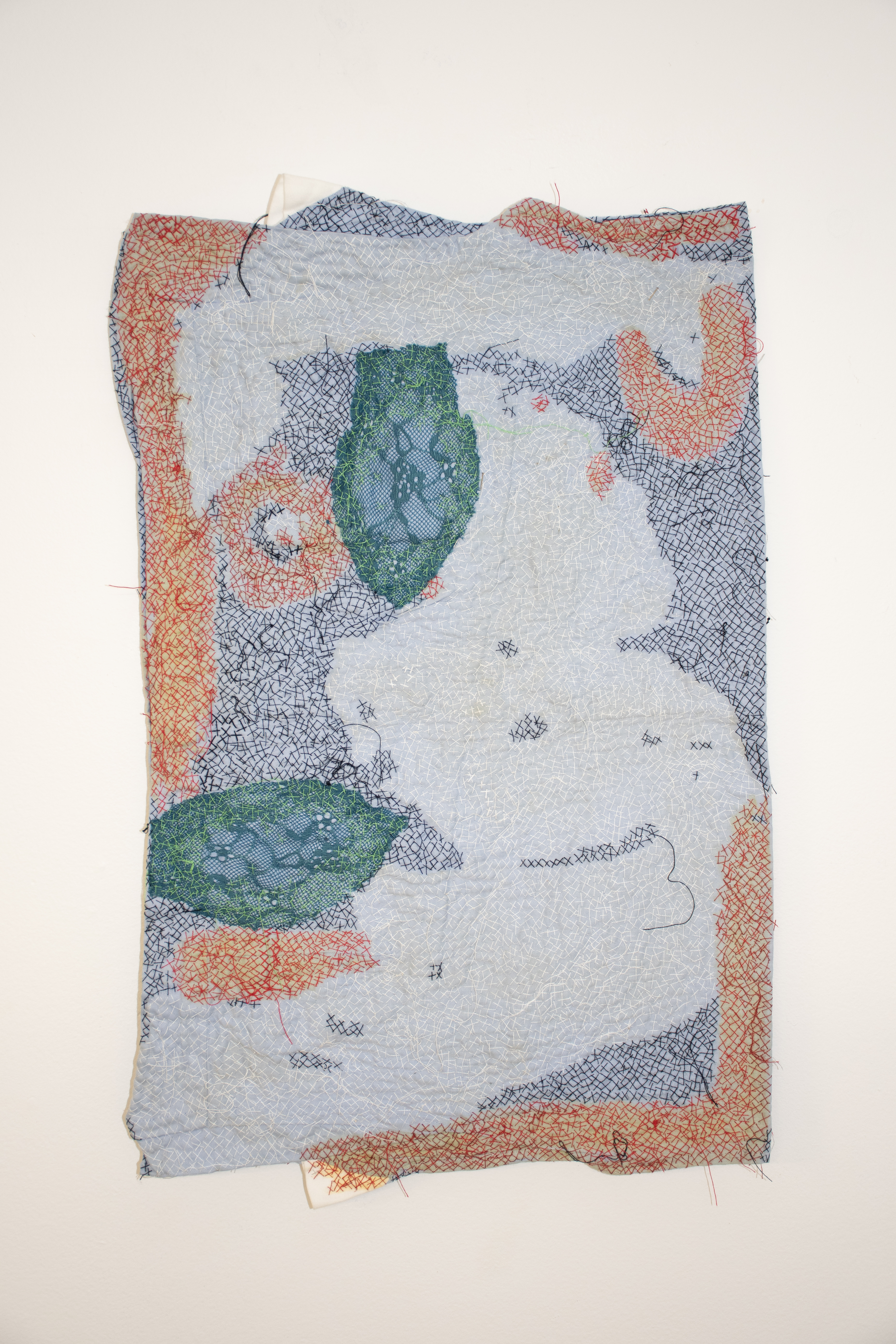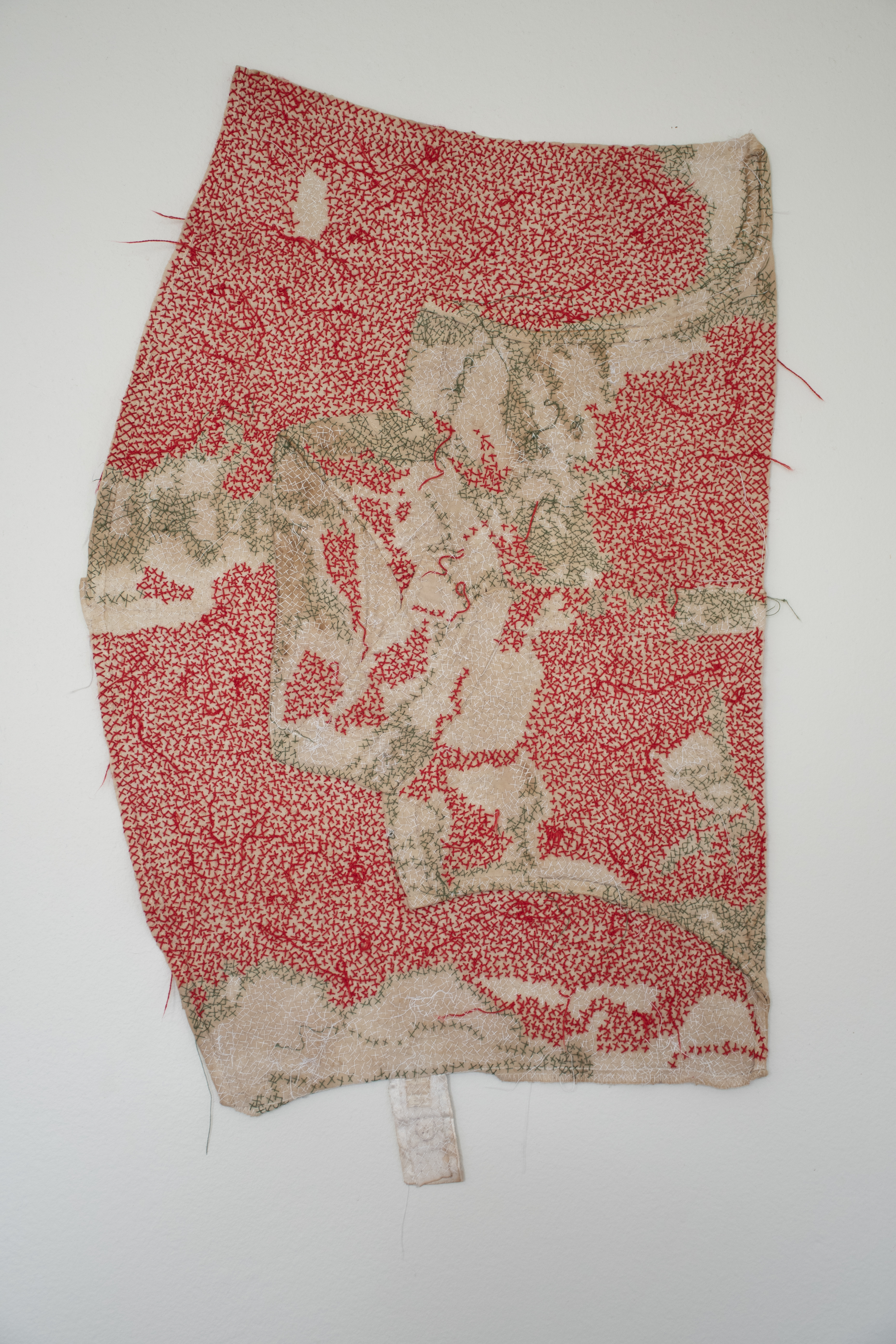 Remediation XII, 2022-23, tea dye and thread on a shirt, 54 x 35,5 cm