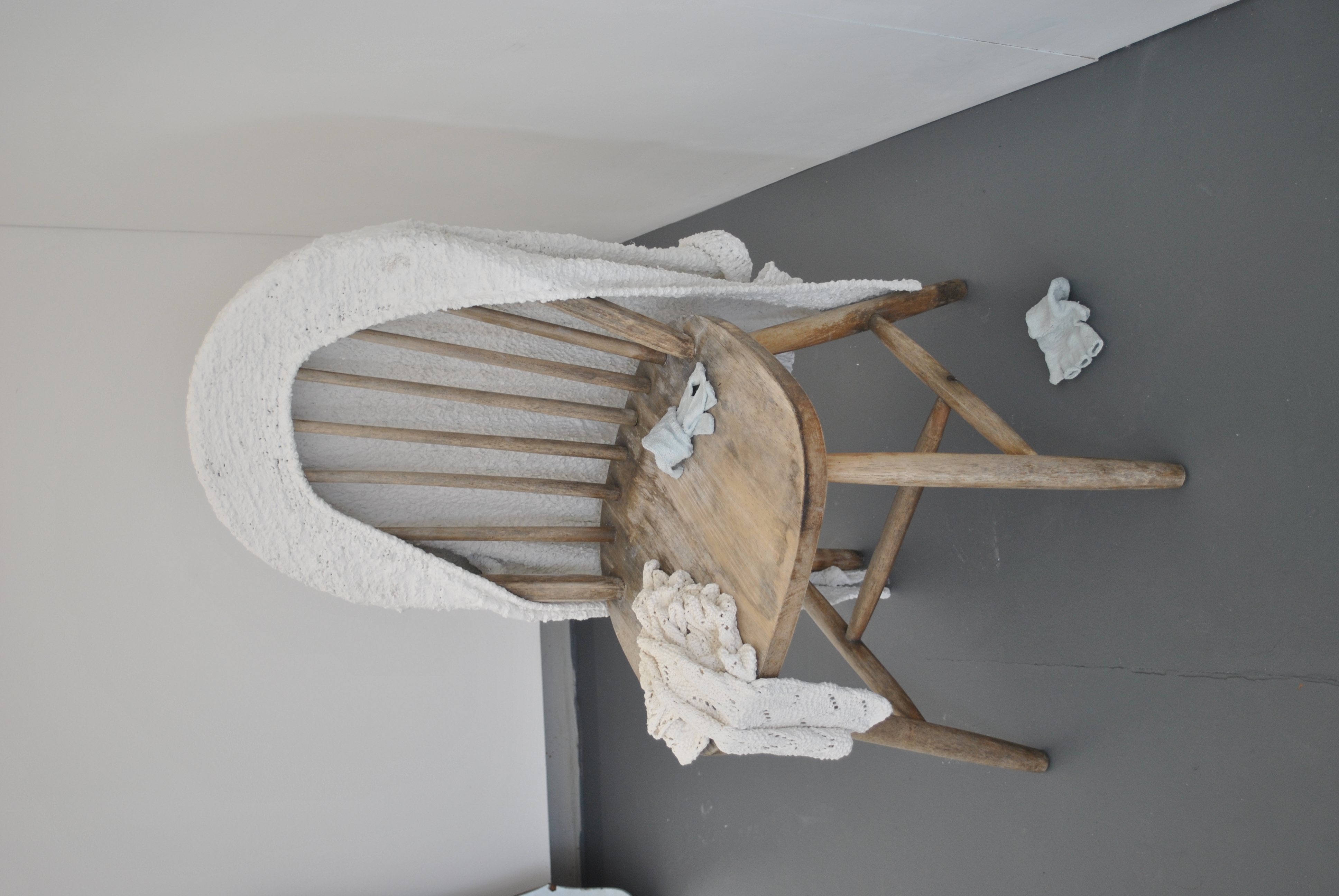 Porcelain, stain, wood chair, plaster, dimensions variable, 2023