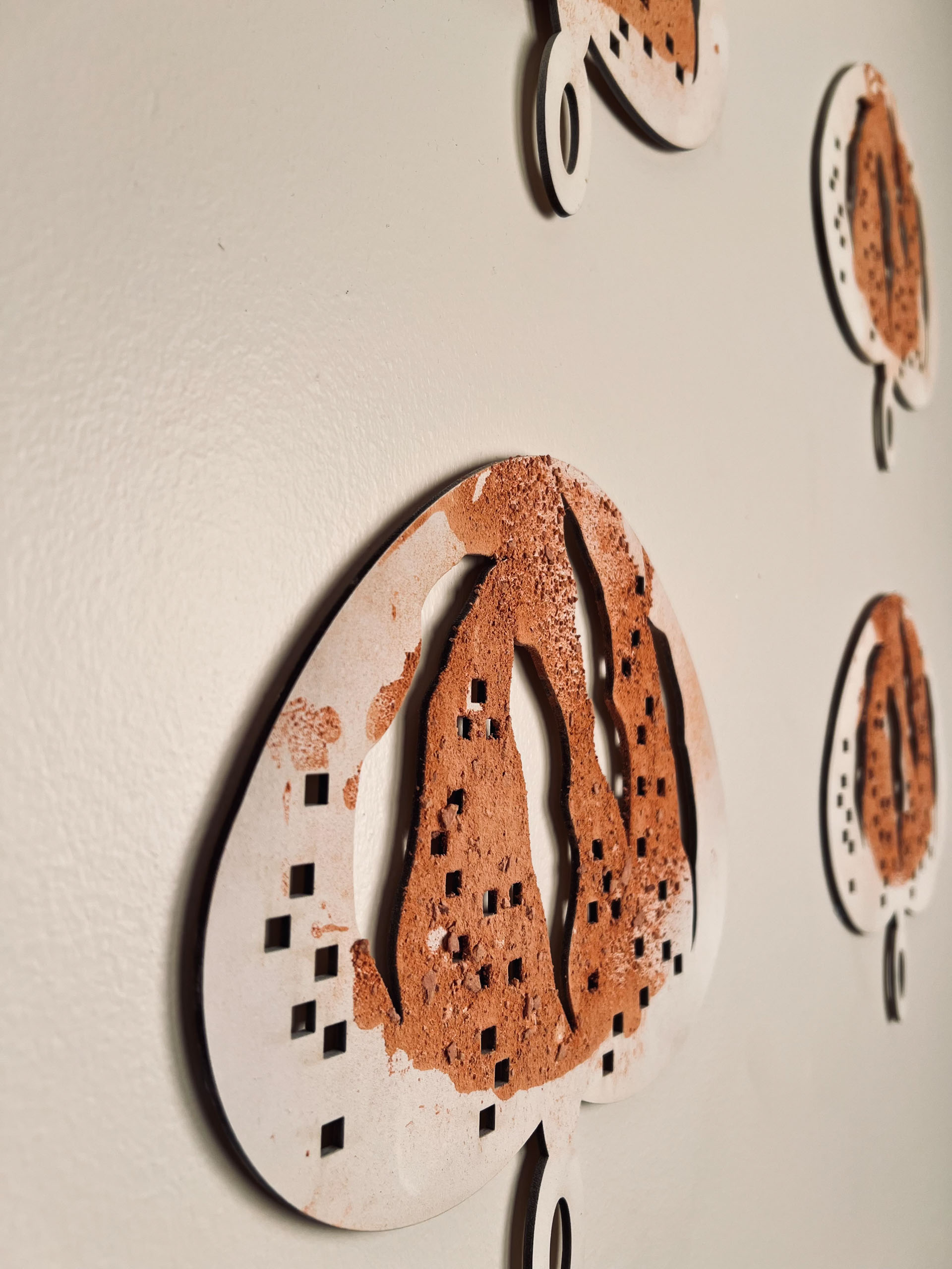 Installation: Laser-cut plywood, clay, jute twine, pine, bowl (found object), acrylic, video media.