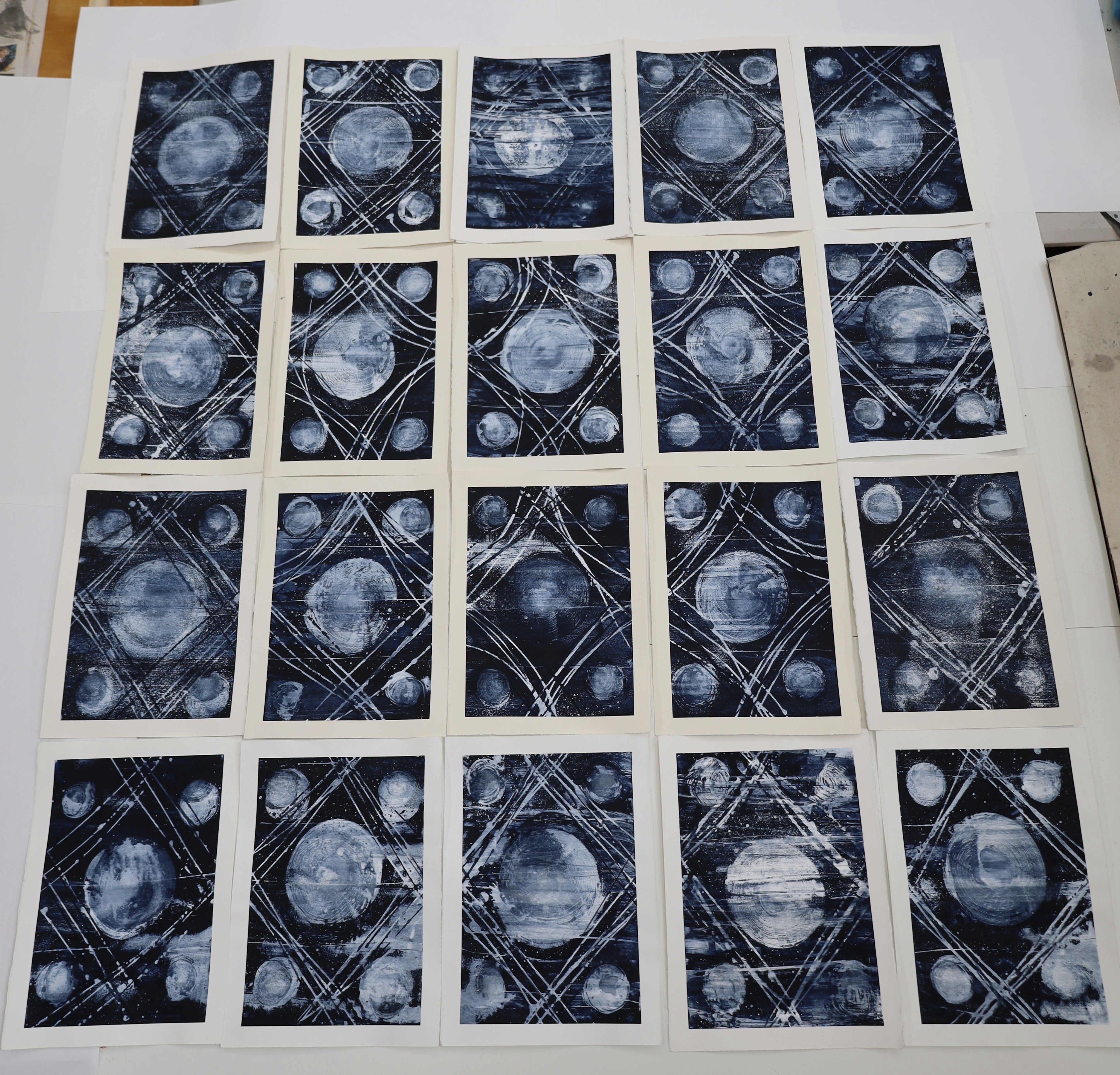 Acrylic on paper, 1.50m H. x. 1.40m W, made up of twenty individual paintings each 380mm H x 280mm W, 2024