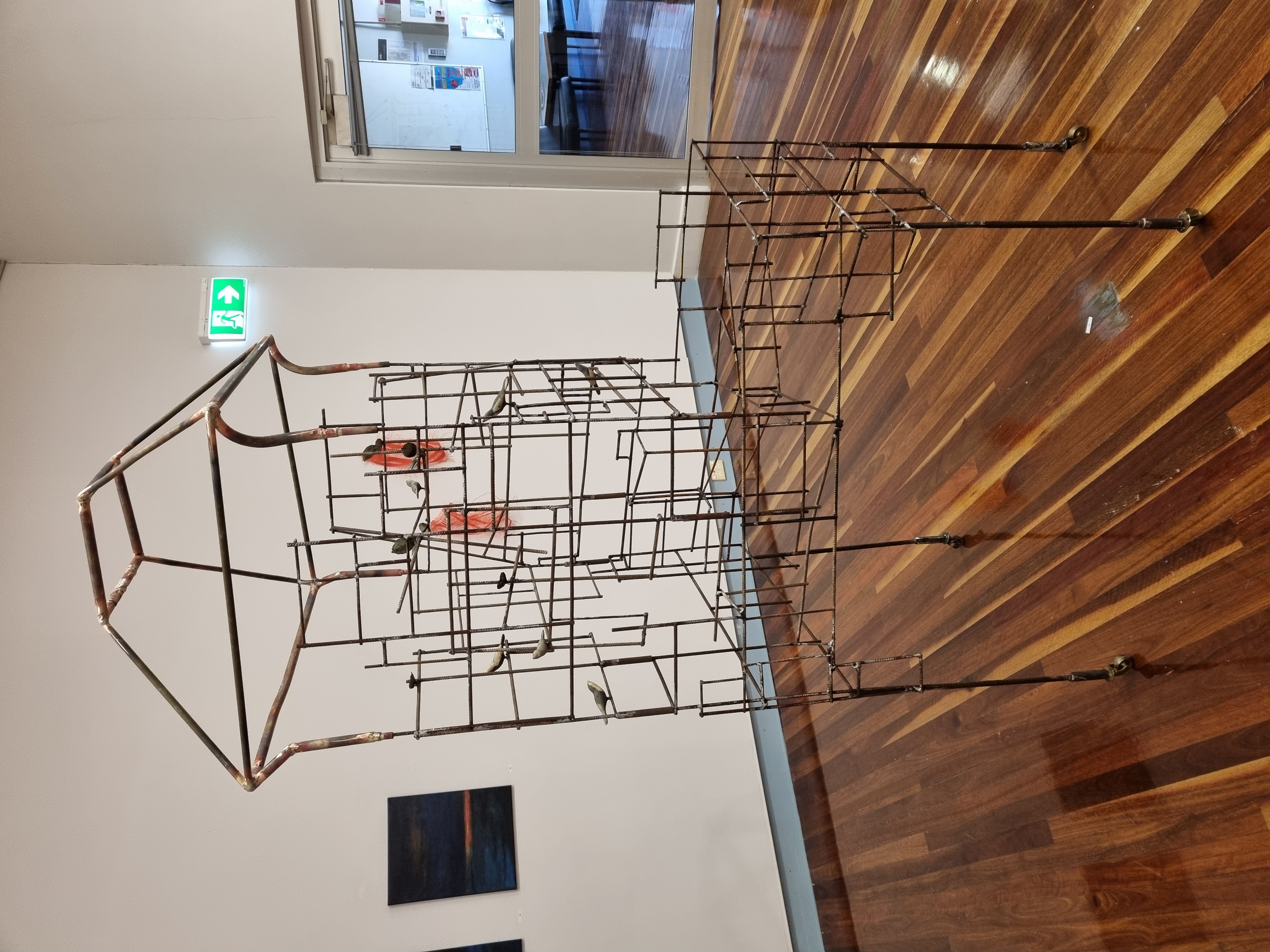 Recovered metals (steel, copper, lead, bronze). Dimensions approx 215x115x80cm. 2024.