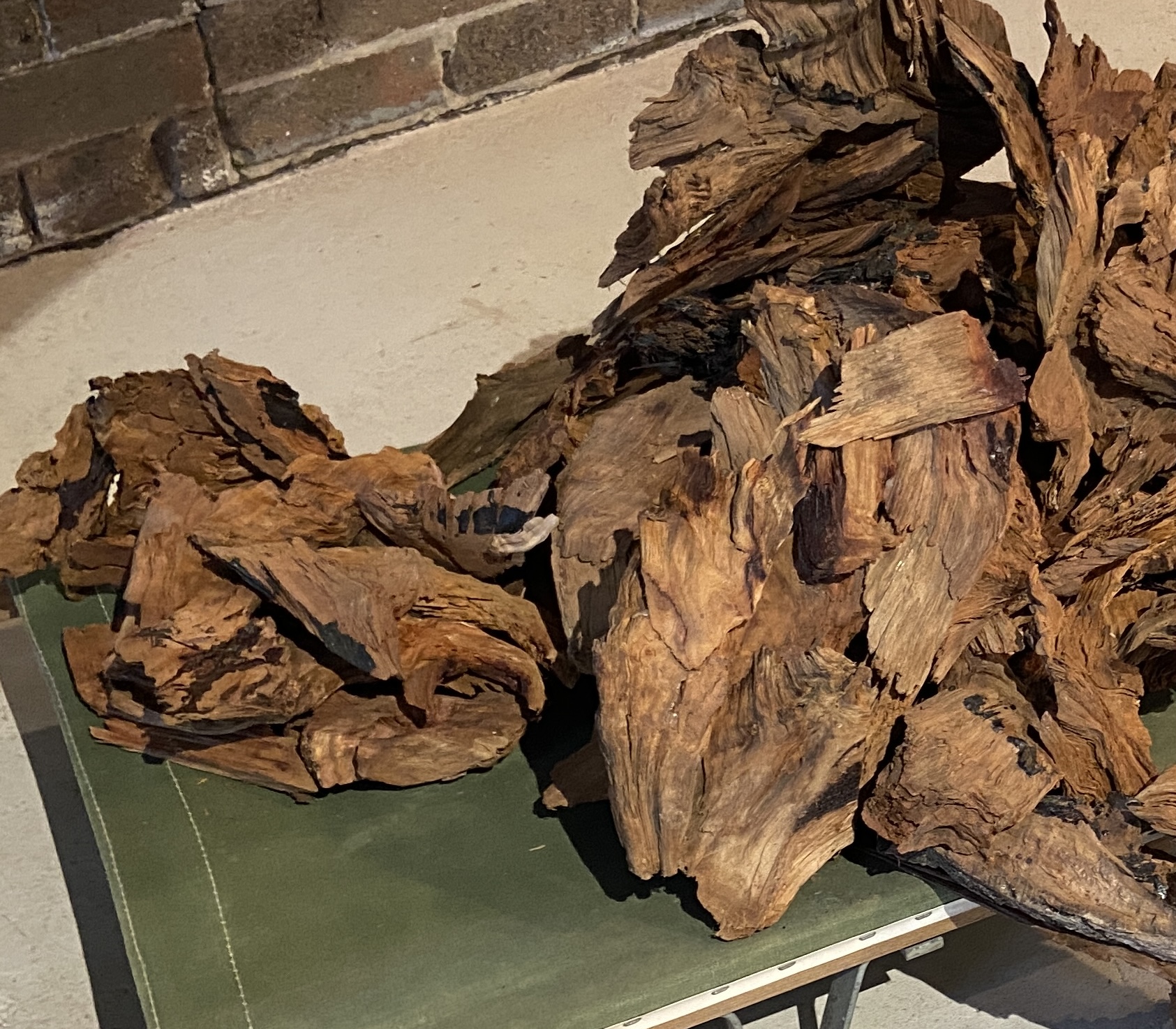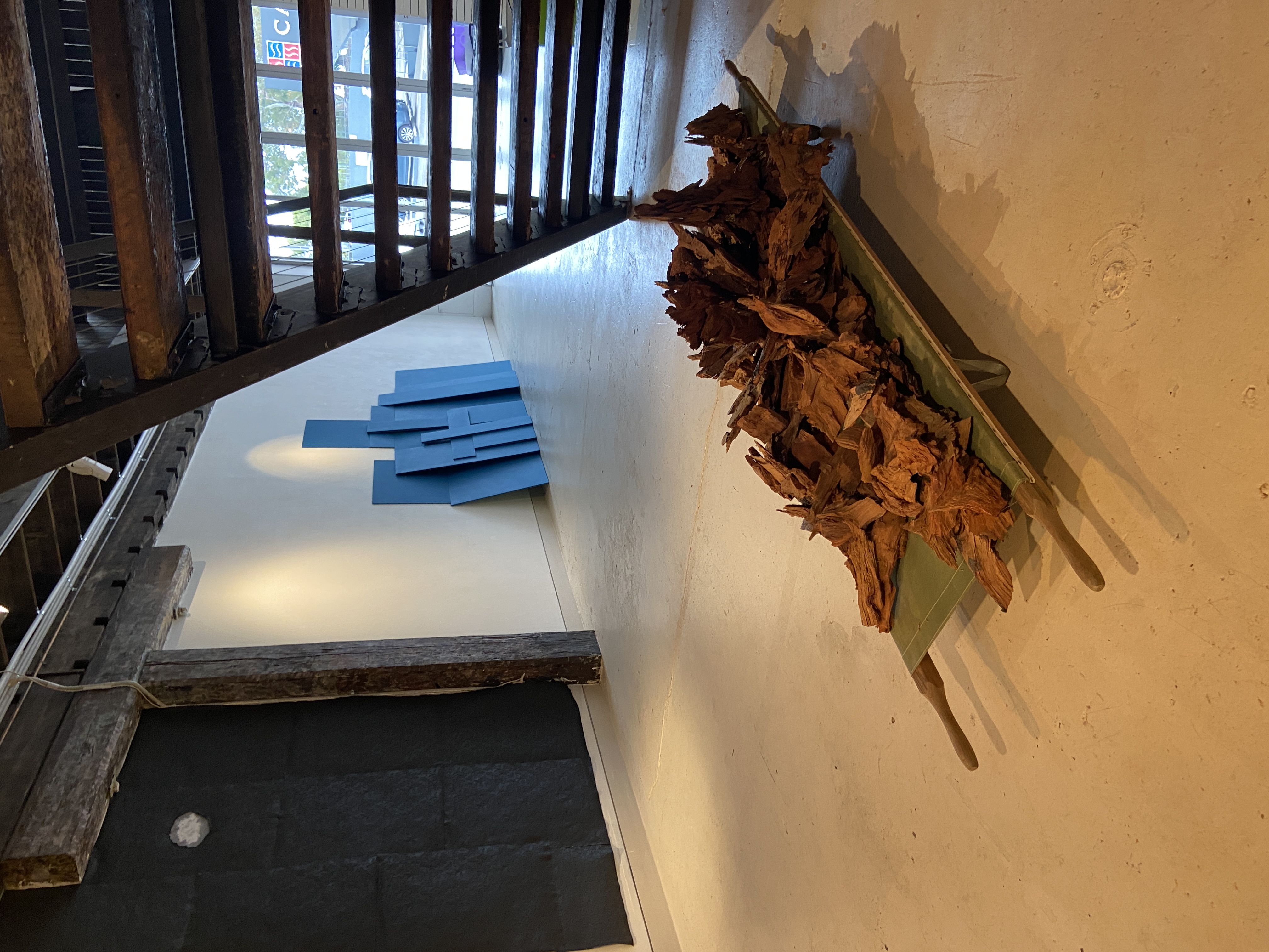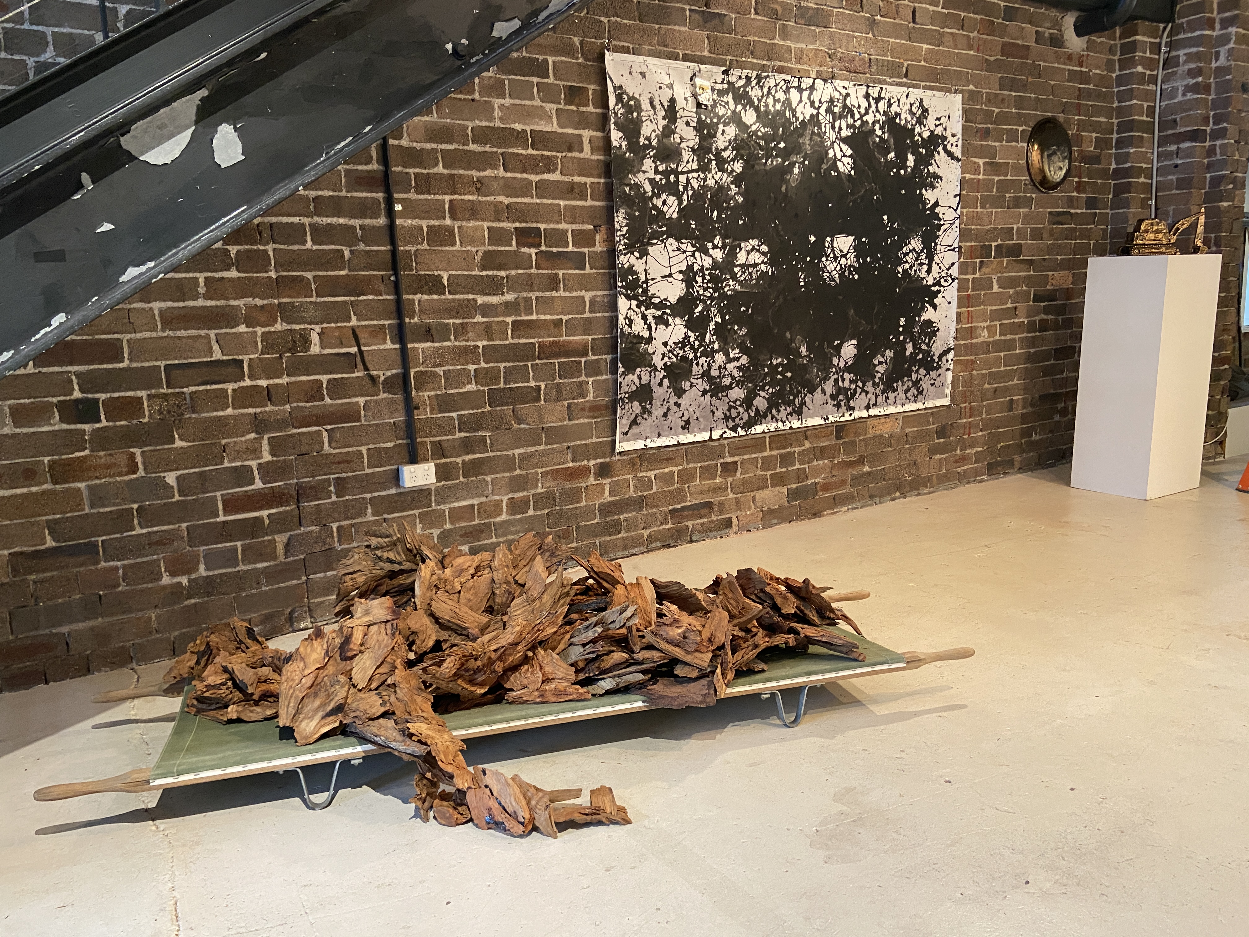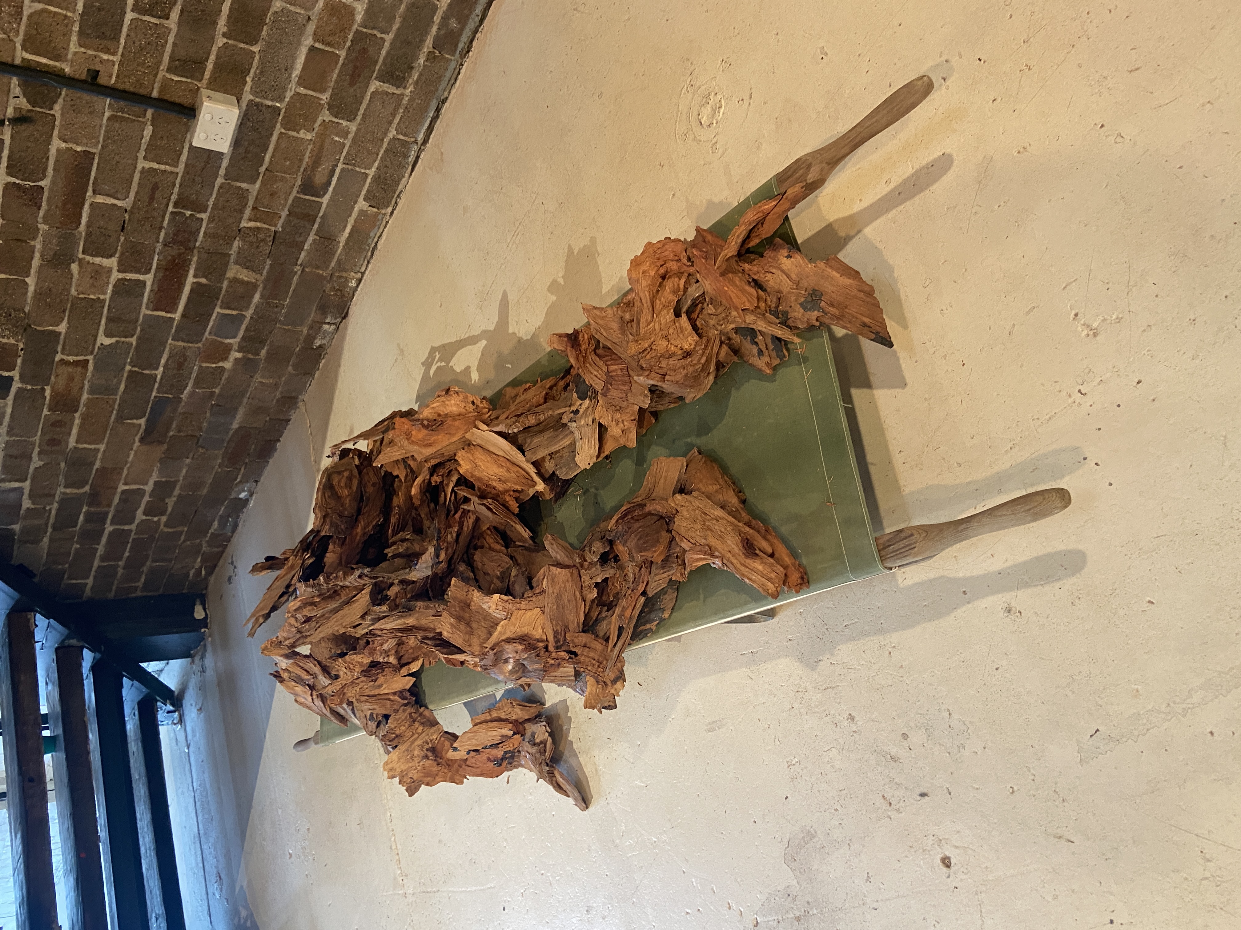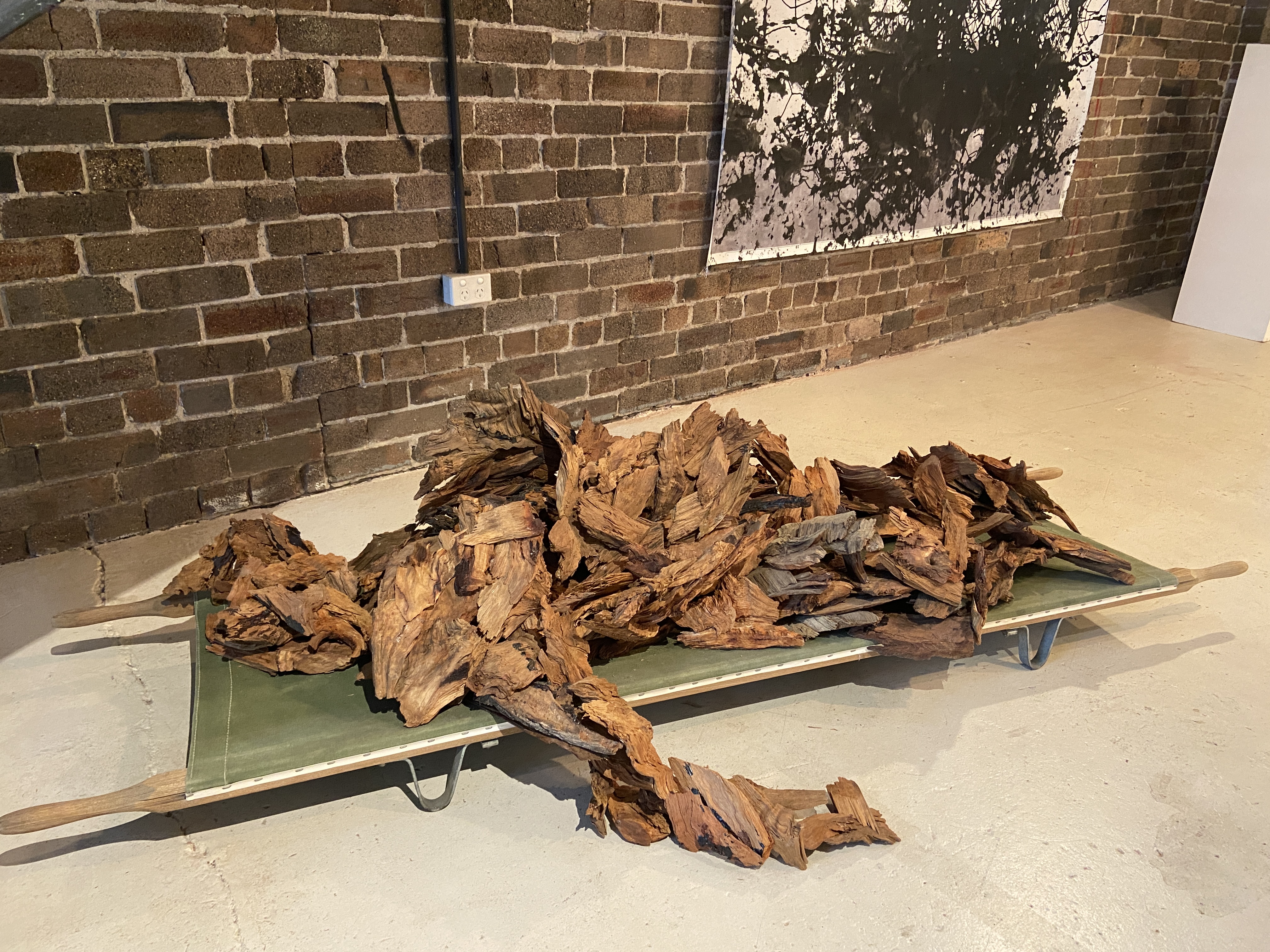 WWII field stretcher, 'reject' woodchips from old-growth forests_500mm(h)x2030mm(l)x560mm(d)_2024