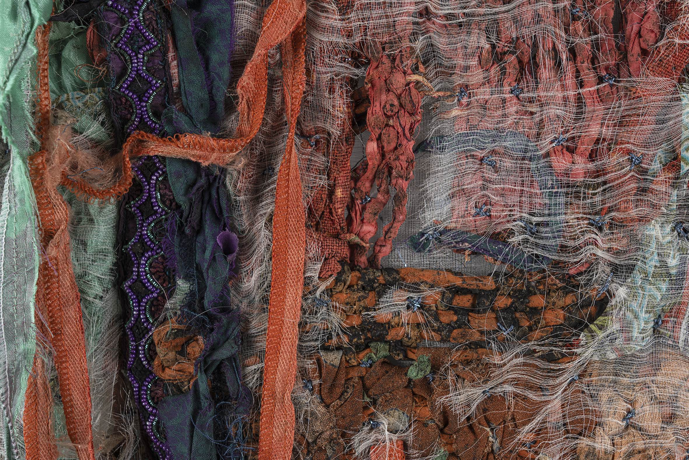 Second hand clothes, silk fabric, weaving and composting, dimensions variable, 2026