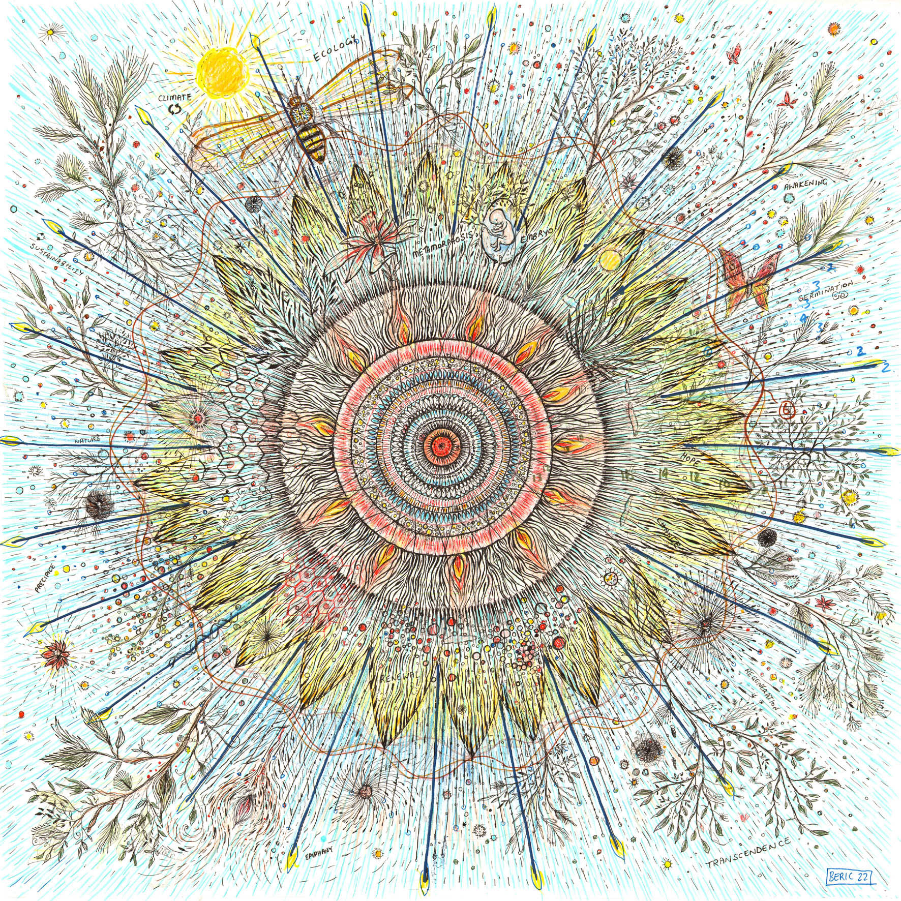 3. Transcendence (2022) Ink and acrylic drawing on paper by Beric Henderson.