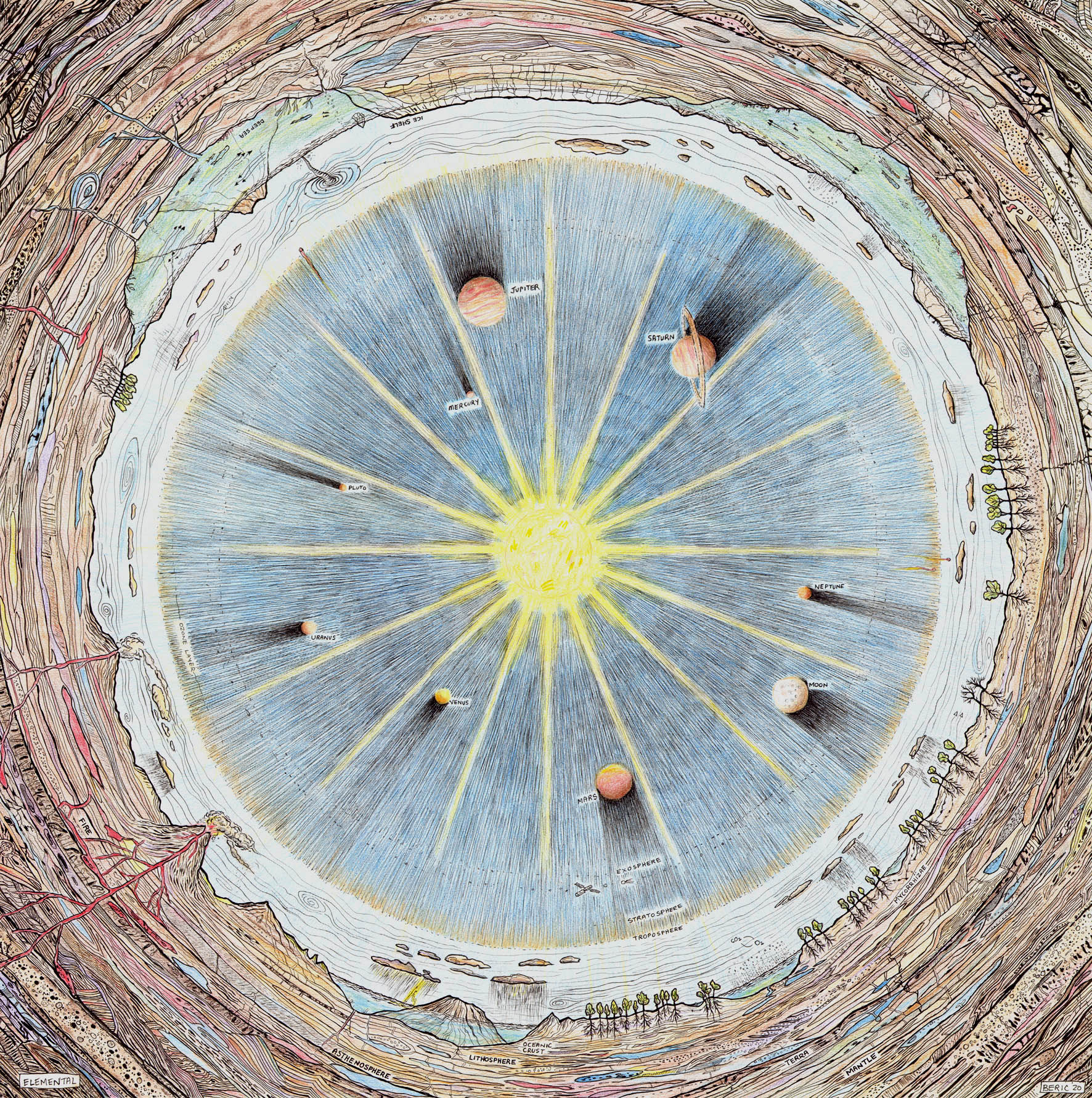 4. Elemental (2020) Ink drawing on paper by Beric Henderson.