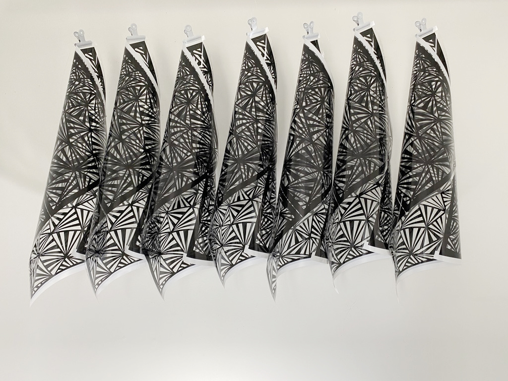 7 Printed acetate modules, metal clips, nylon line; 137 x 165 x 35cm; 2021
