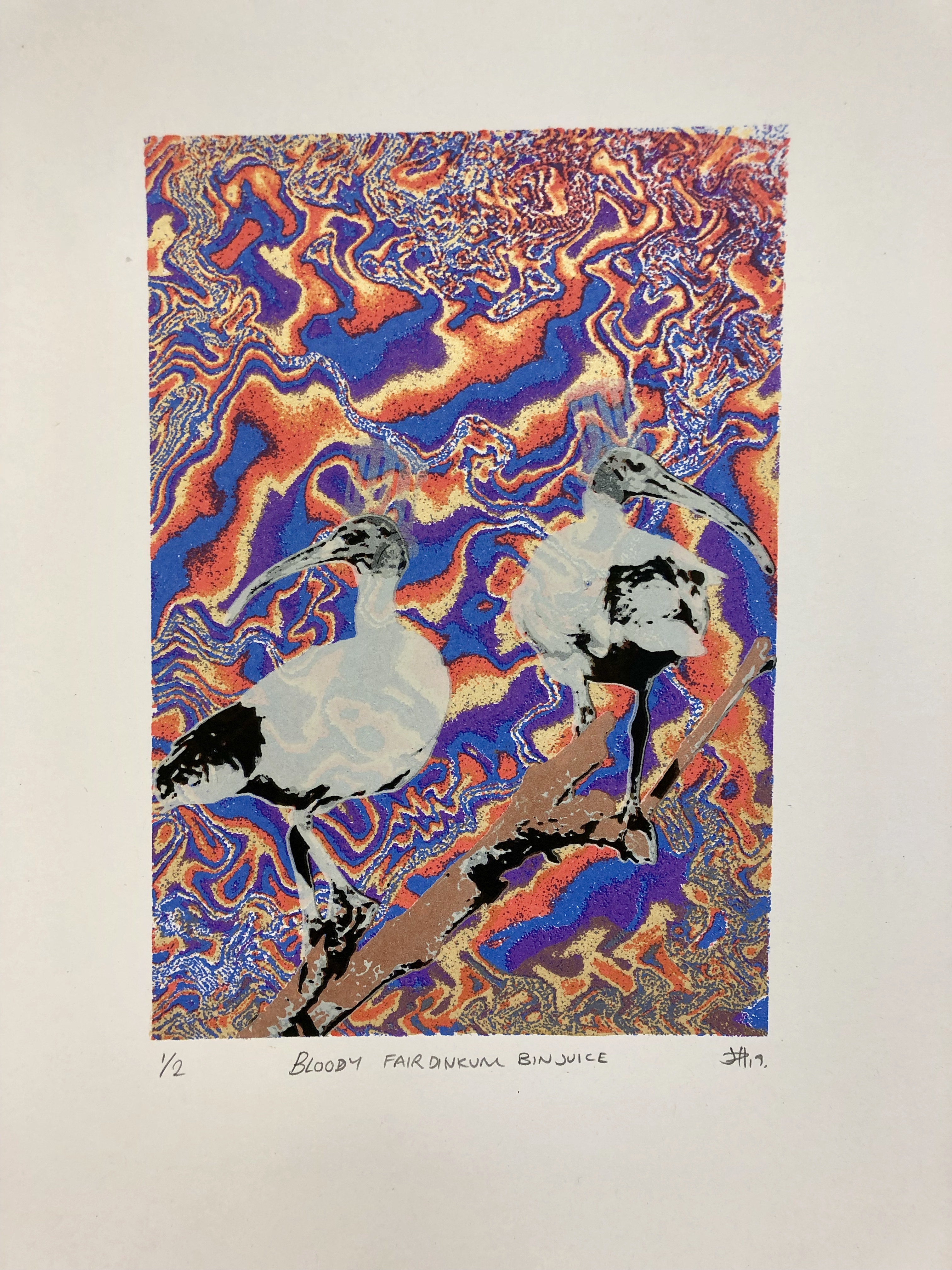 I am conceptual artist. During my honours I theorised a relationship between music and fine art, the manifesto is known as 'Visual Transposition'. The theorem takes the potential of sound transposition and visualises the inherent nature of a composer’s arrangement, using music and aesthetic and colour theory. I also enjoy printing Australian flora and fauna as mimics what you might find in a pub on a Friday night, making it easy imagery for cultural parallels.