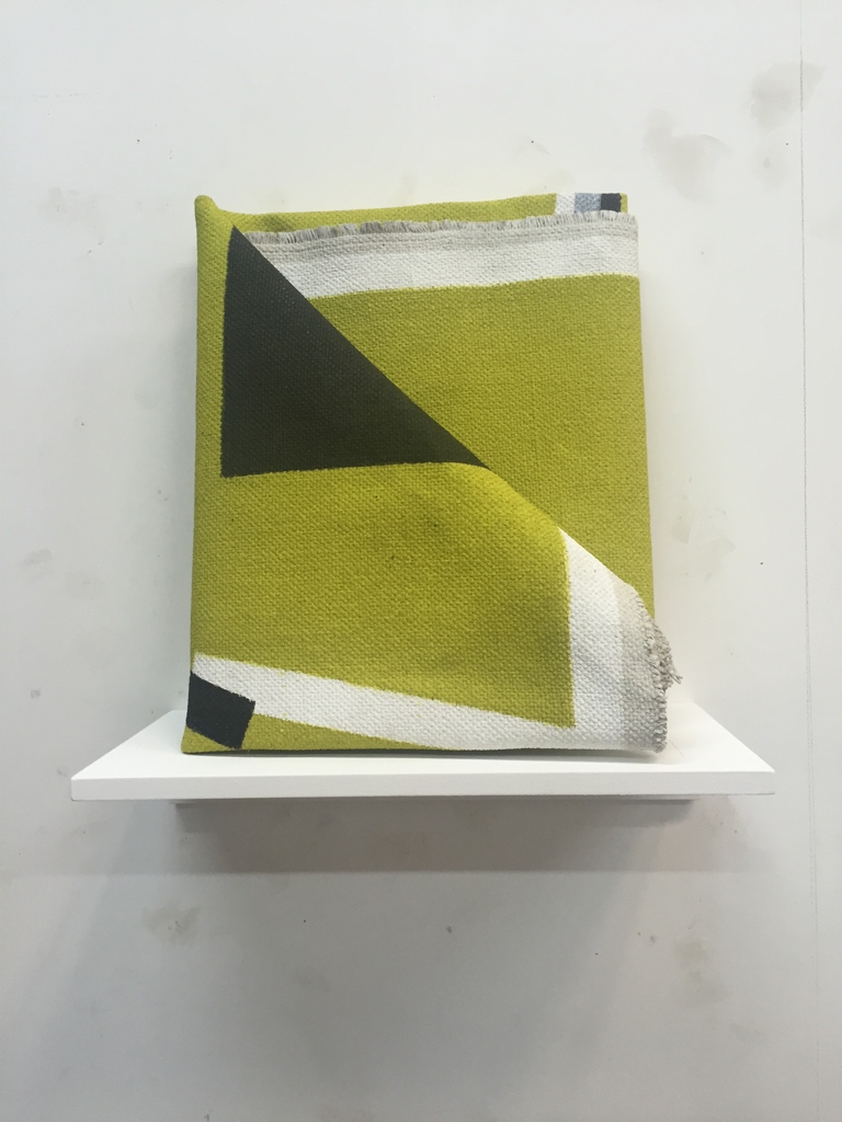 1- FOLDED Green and Black, Acrylic on Belgian Linen on small wooden shelf