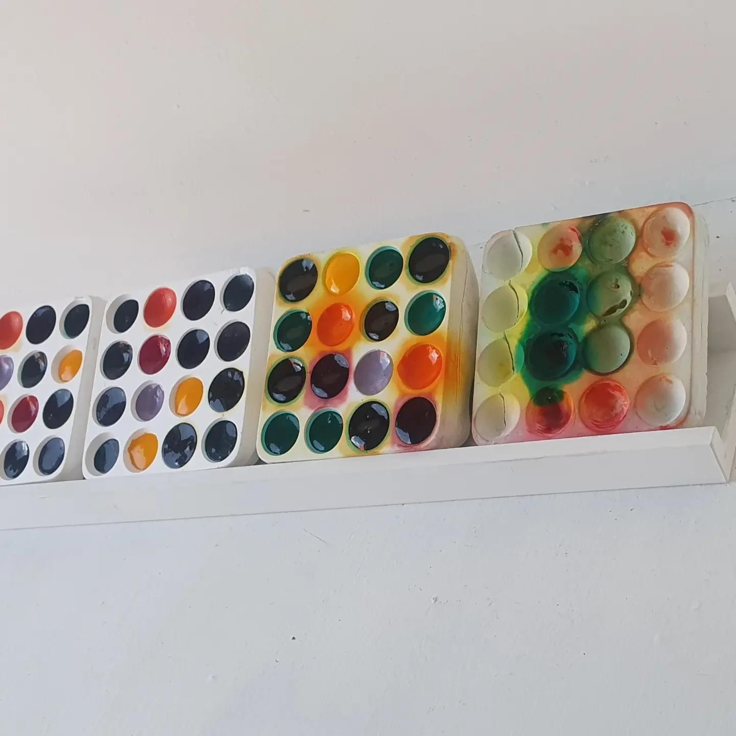 I make substances into paints used in objects installations as new painting forms. The substances are set within pva binders to sustain longevity, and carry important discourses on arts production modes, and notions of poetic empherality.