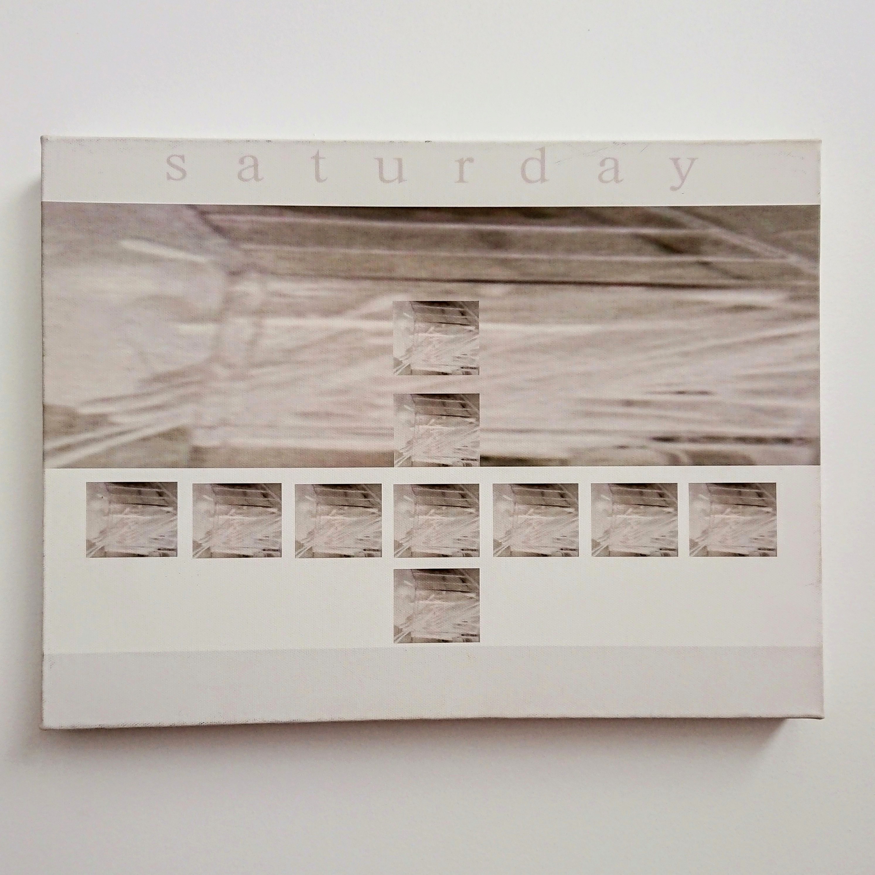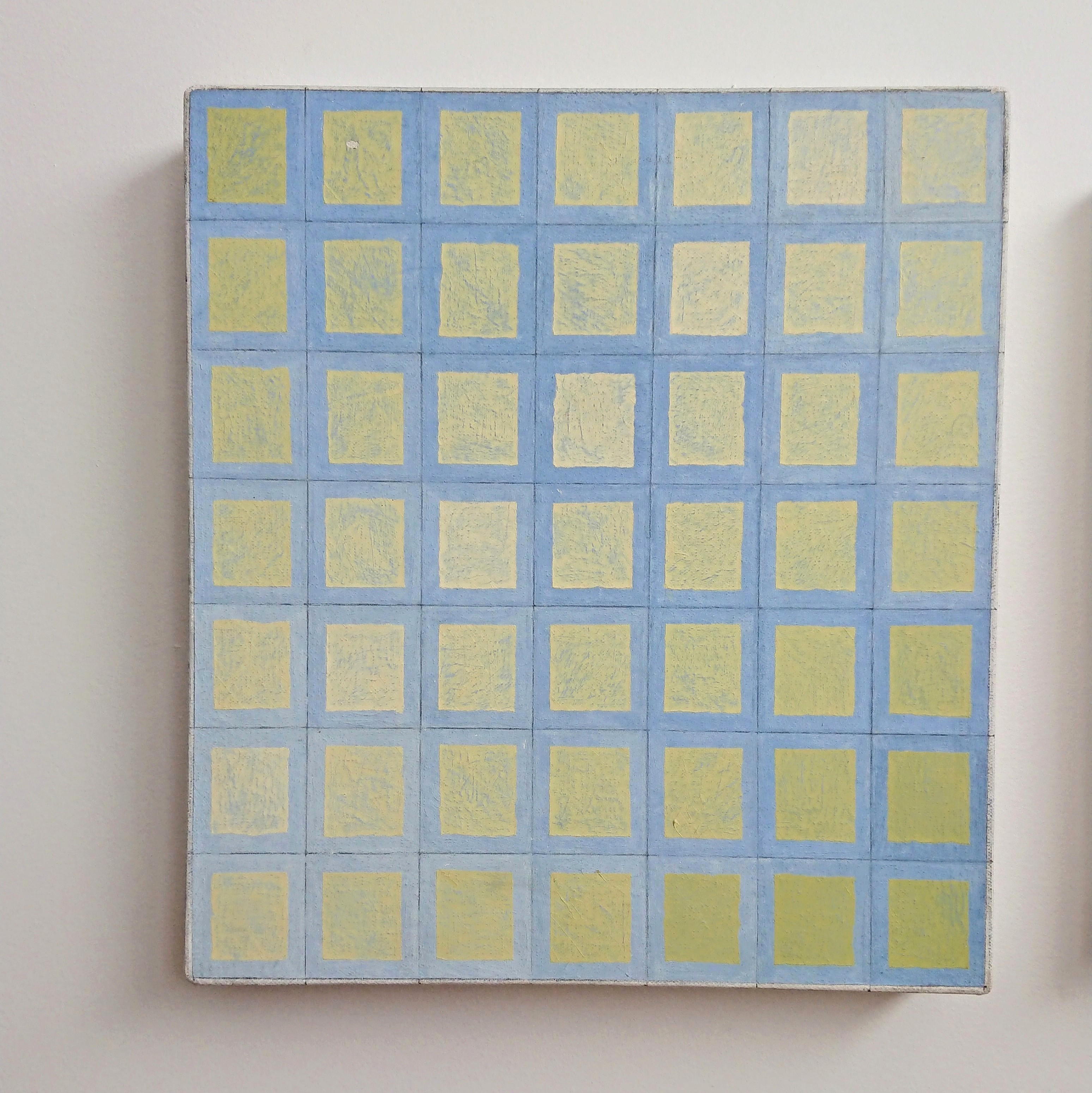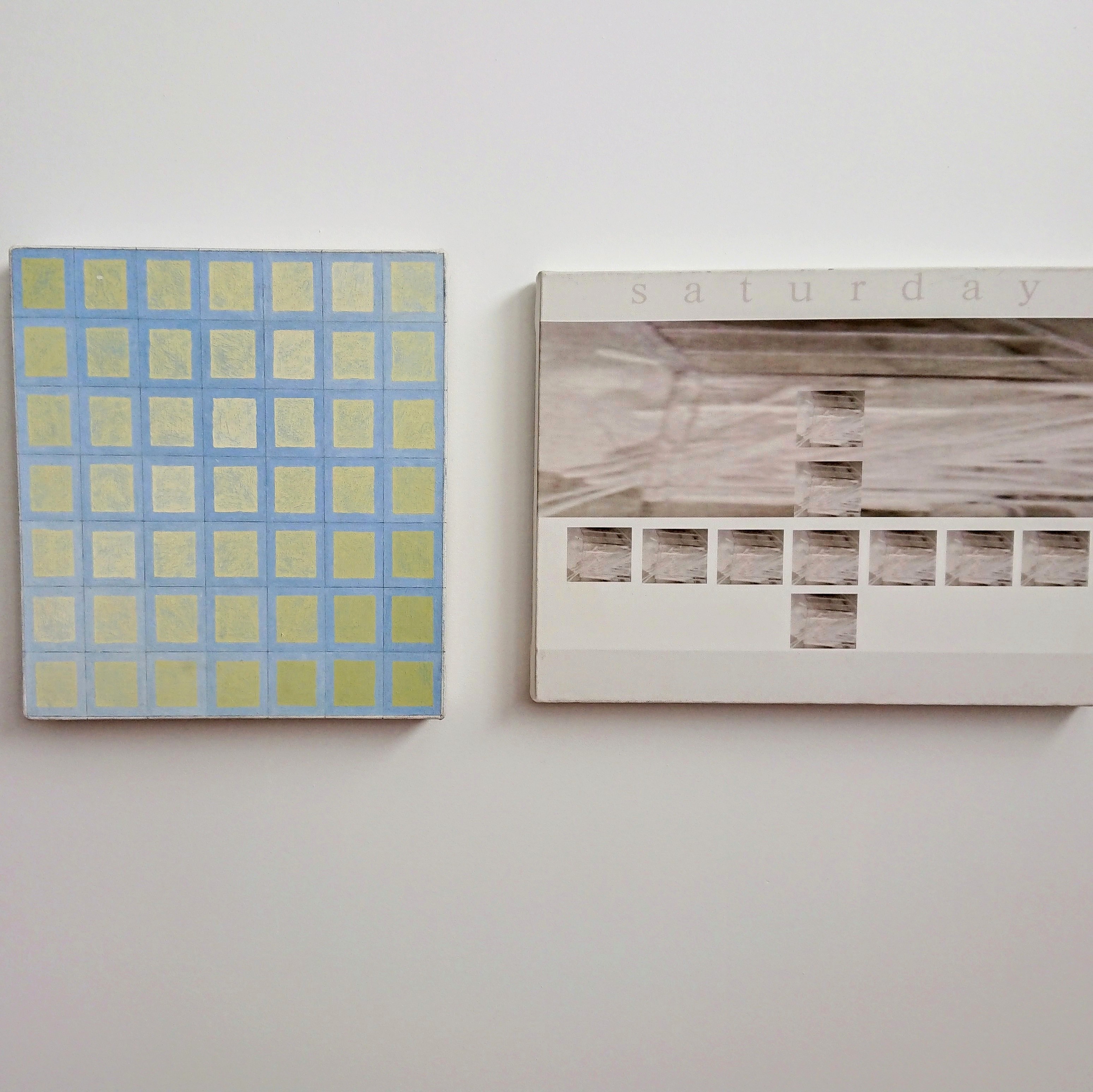 “Untitled (49 yellow squares on blue grid)” + “saturday”
