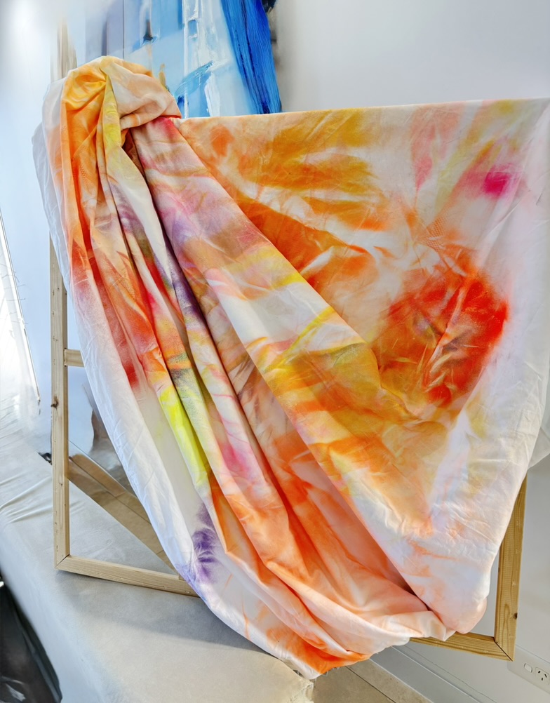 Spray paint on fabric, frame, Width 115cm x Height 125cm