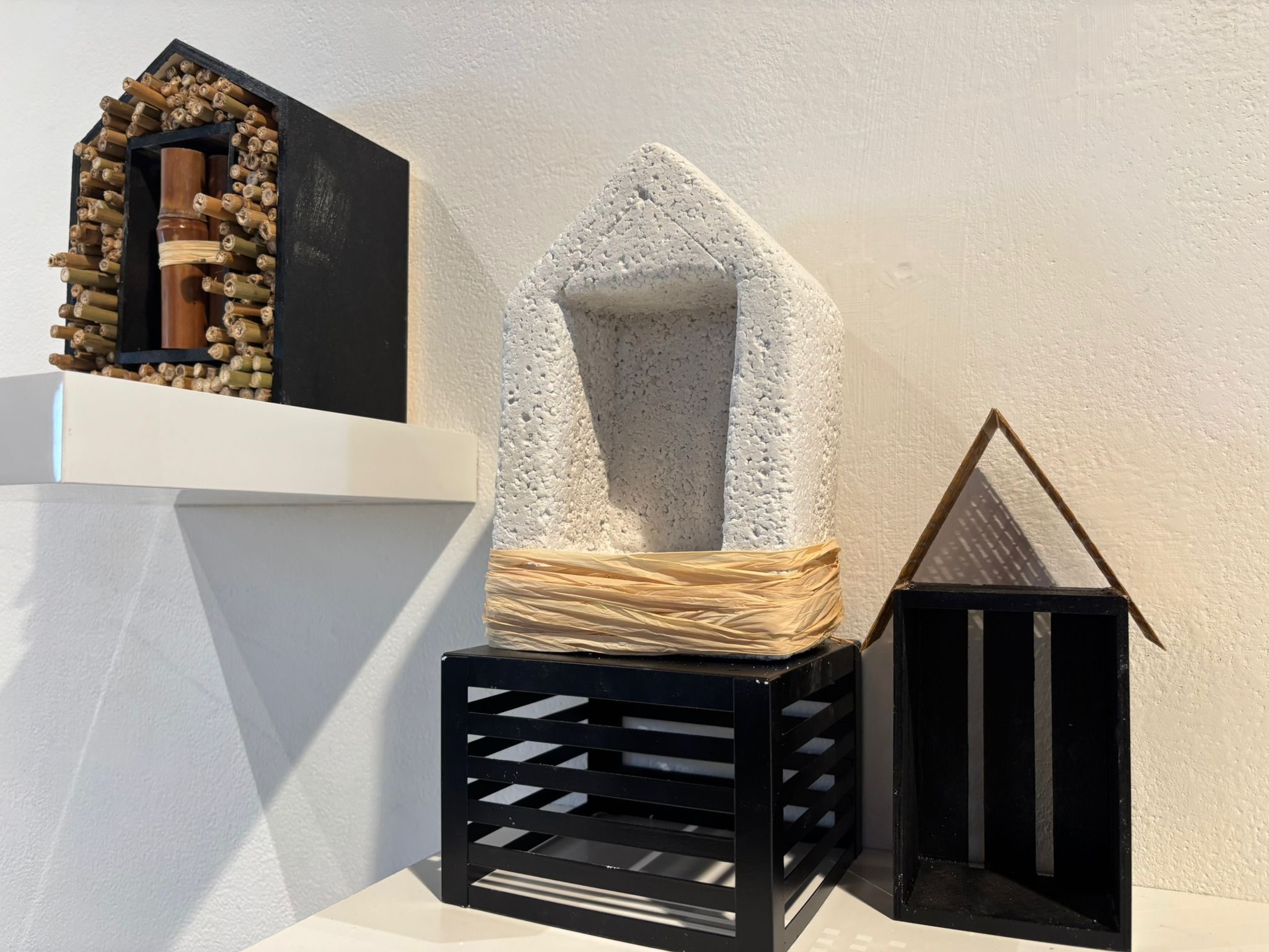 Installation. approx 100cm X 100cm. Found objects, bamboo, plaster of Paris, gum tree branches, rice, 2025
