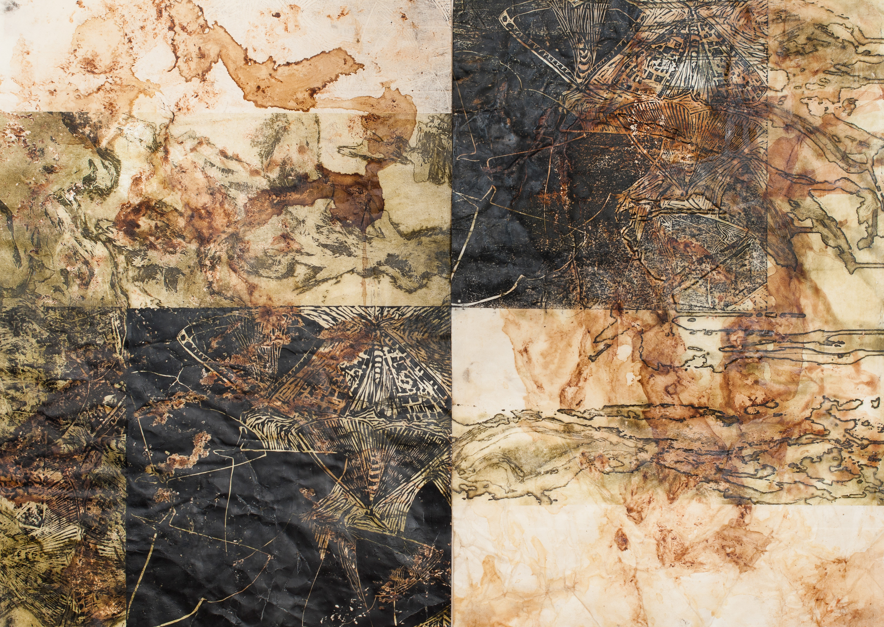 2. Shuttered, linocut, etching, beeswax, 47x42cm