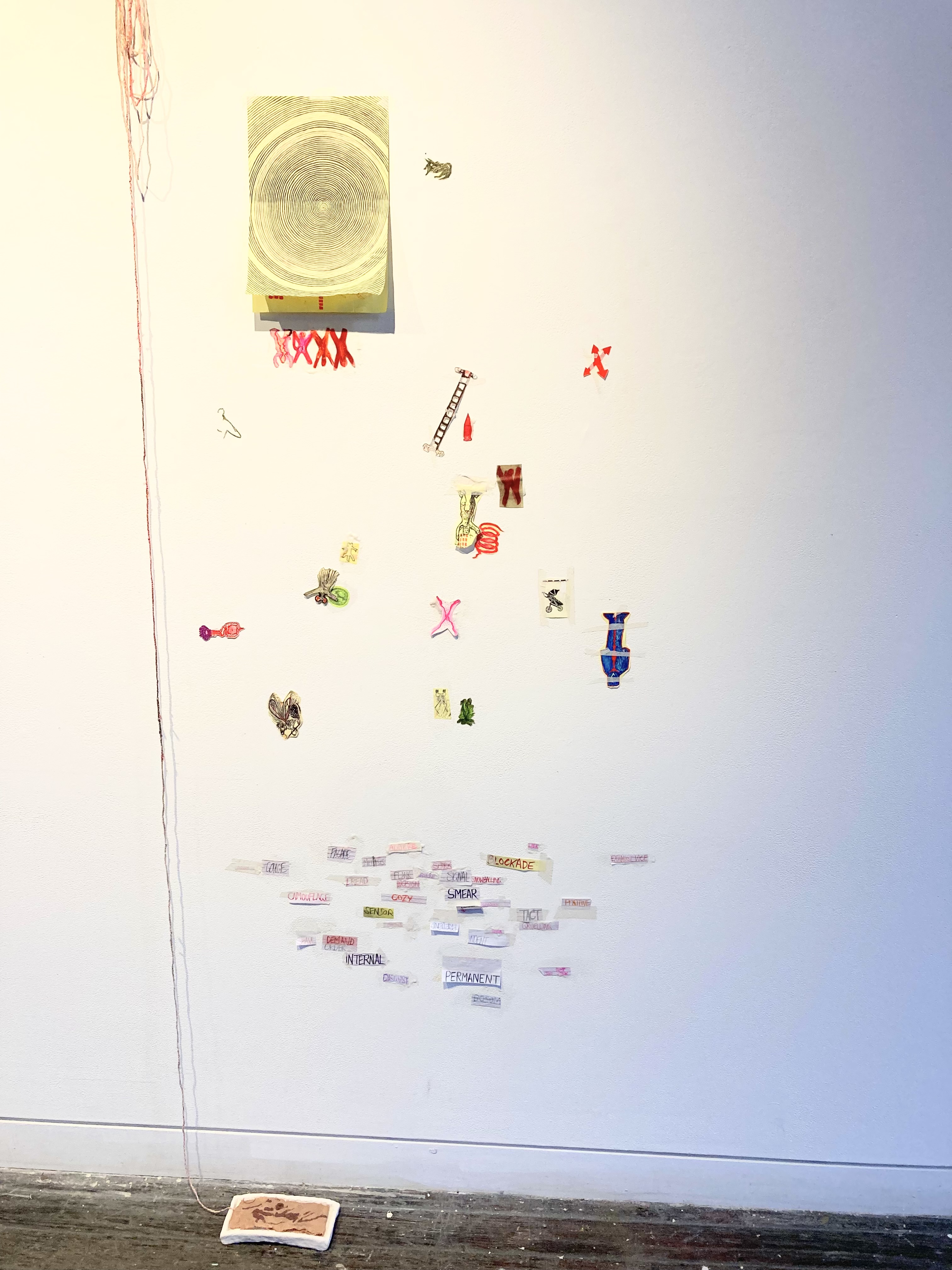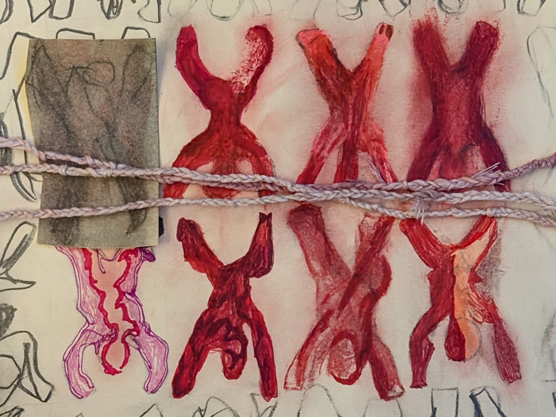Kitchen twine, office paper, cardboard, airdrying clay, plastic container, kitchen paper, tissues, vegetable dye, permanent marker, ballpoint pen, crayons, petroleum jelly, olive oil, charcoal, masking tape, rice paste, graphite, wall hook, bed linen, garden soil, ink. 2025