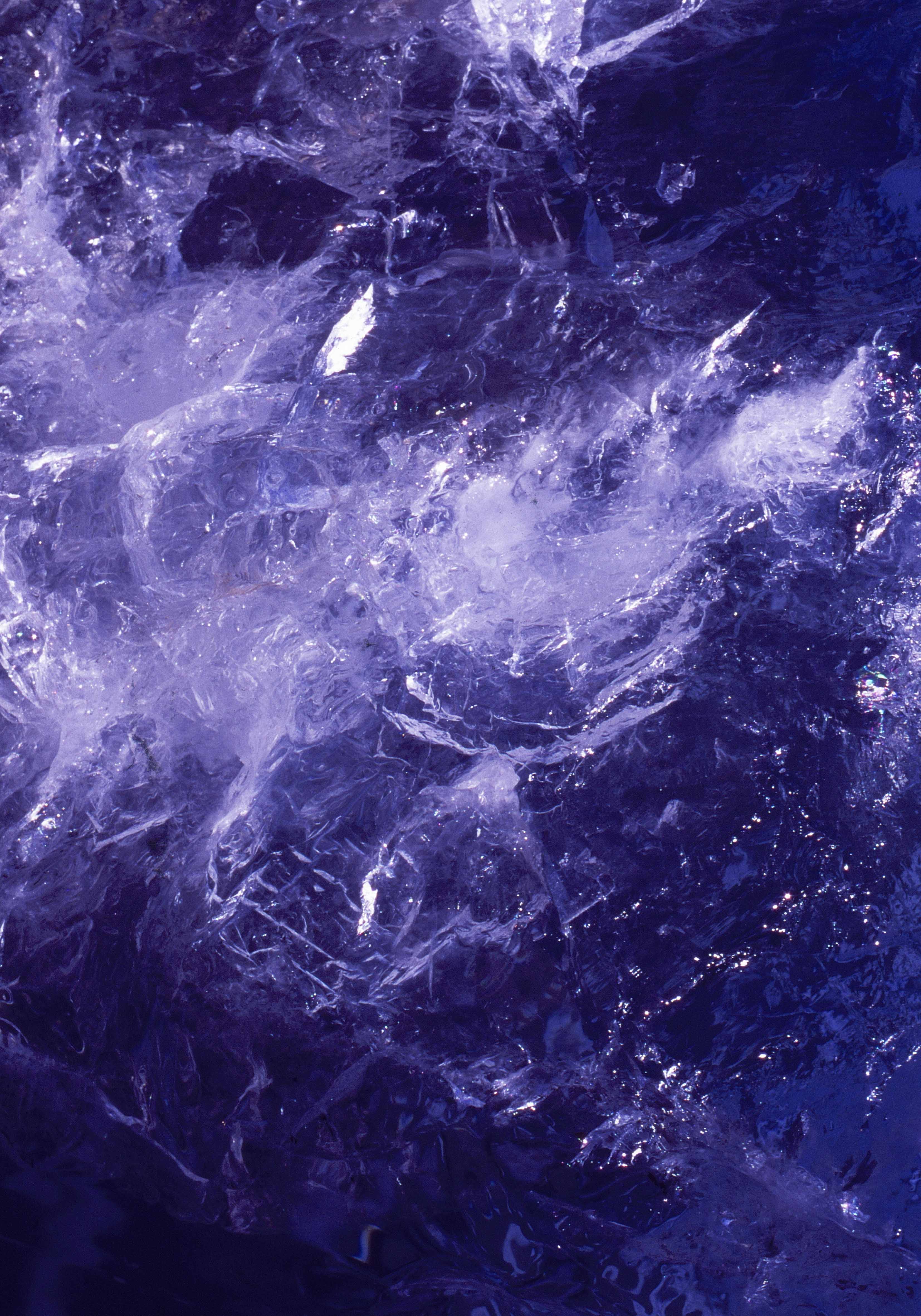 Images show light travelling through blocks of ice. As they melt their form is changed. The frozen fragments refract and reflect light, producing patterns of shifting landscapes, referencing impacts of climate change.