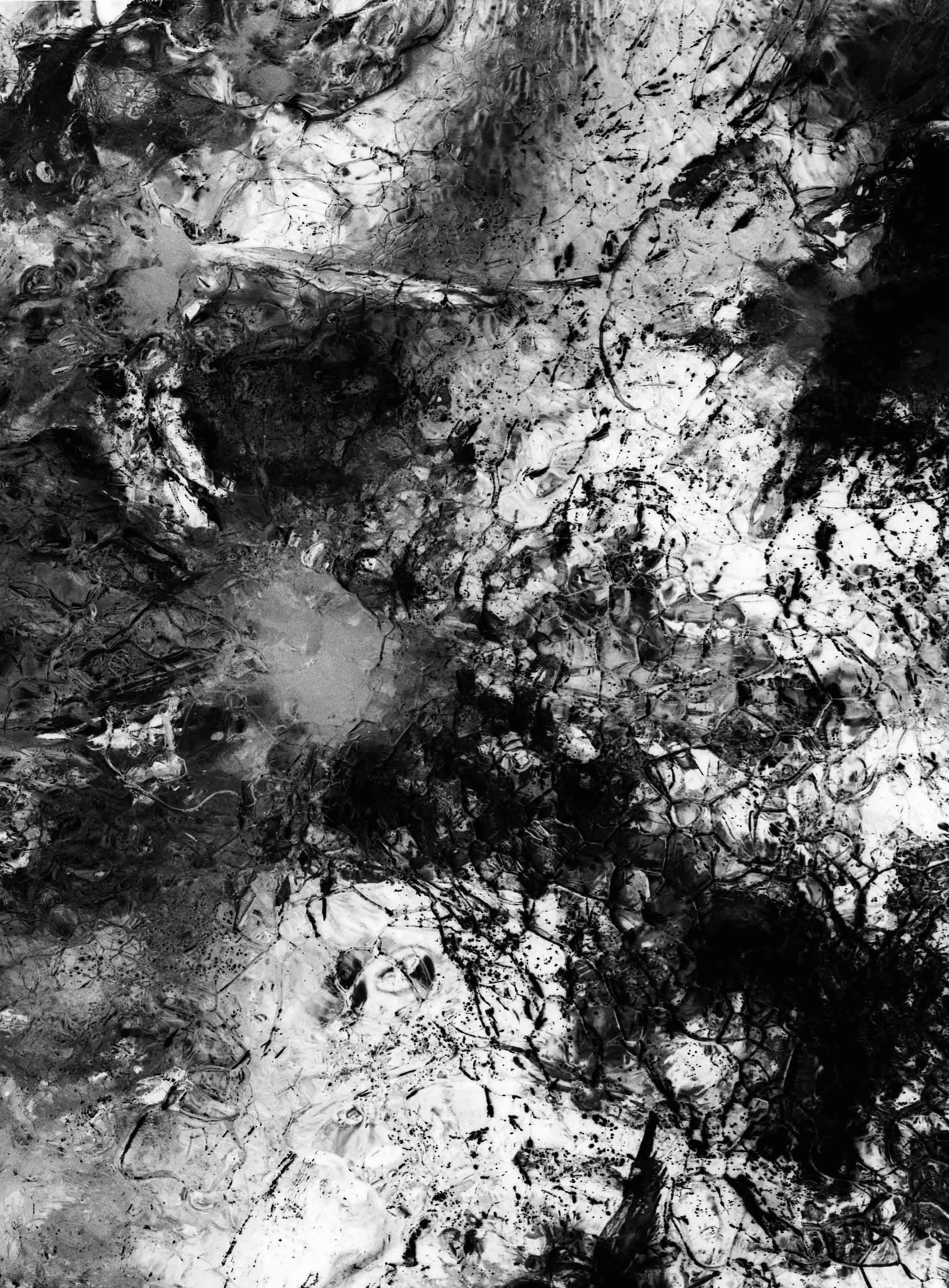 Like a window into other worlds, drips and spots from the melting ice reference how humans have marked the earth. They reference the profound impacts of human-induced climate change on our landscapes.