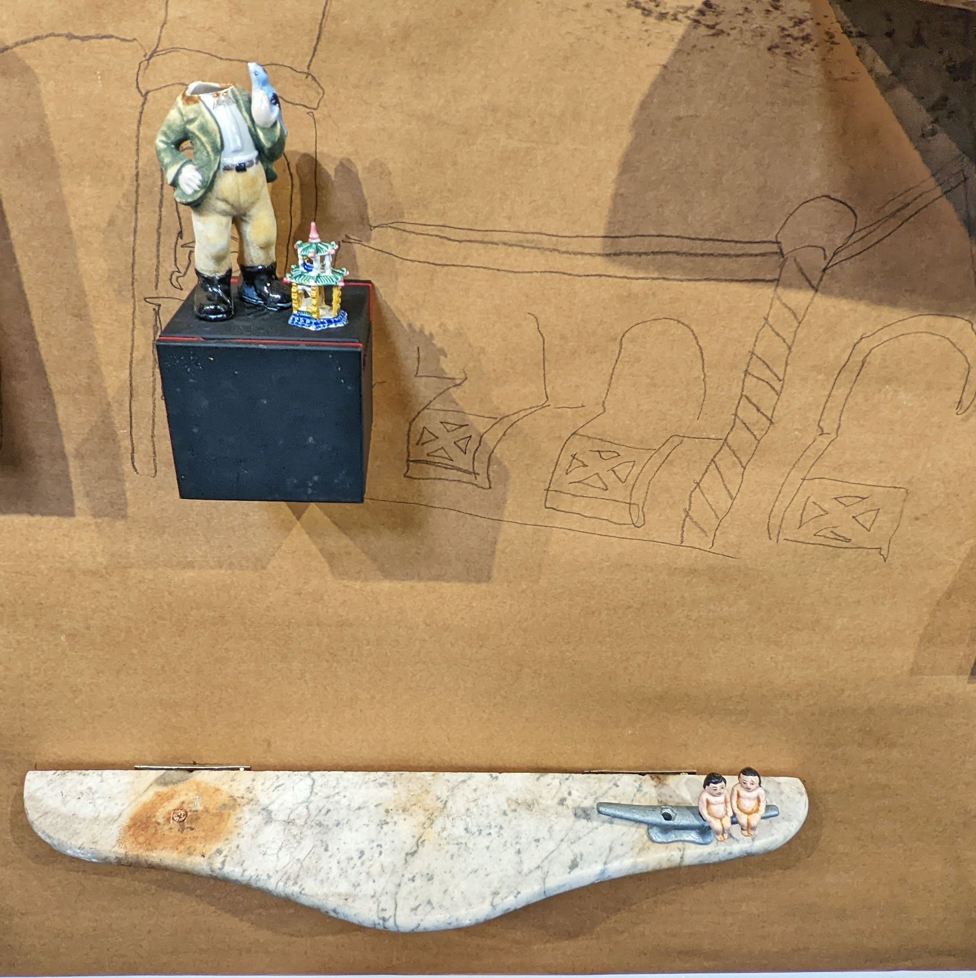 I’m combining my interest in children’s play, storytelling and sculptures’ inherent physicality to explore embodied resting.