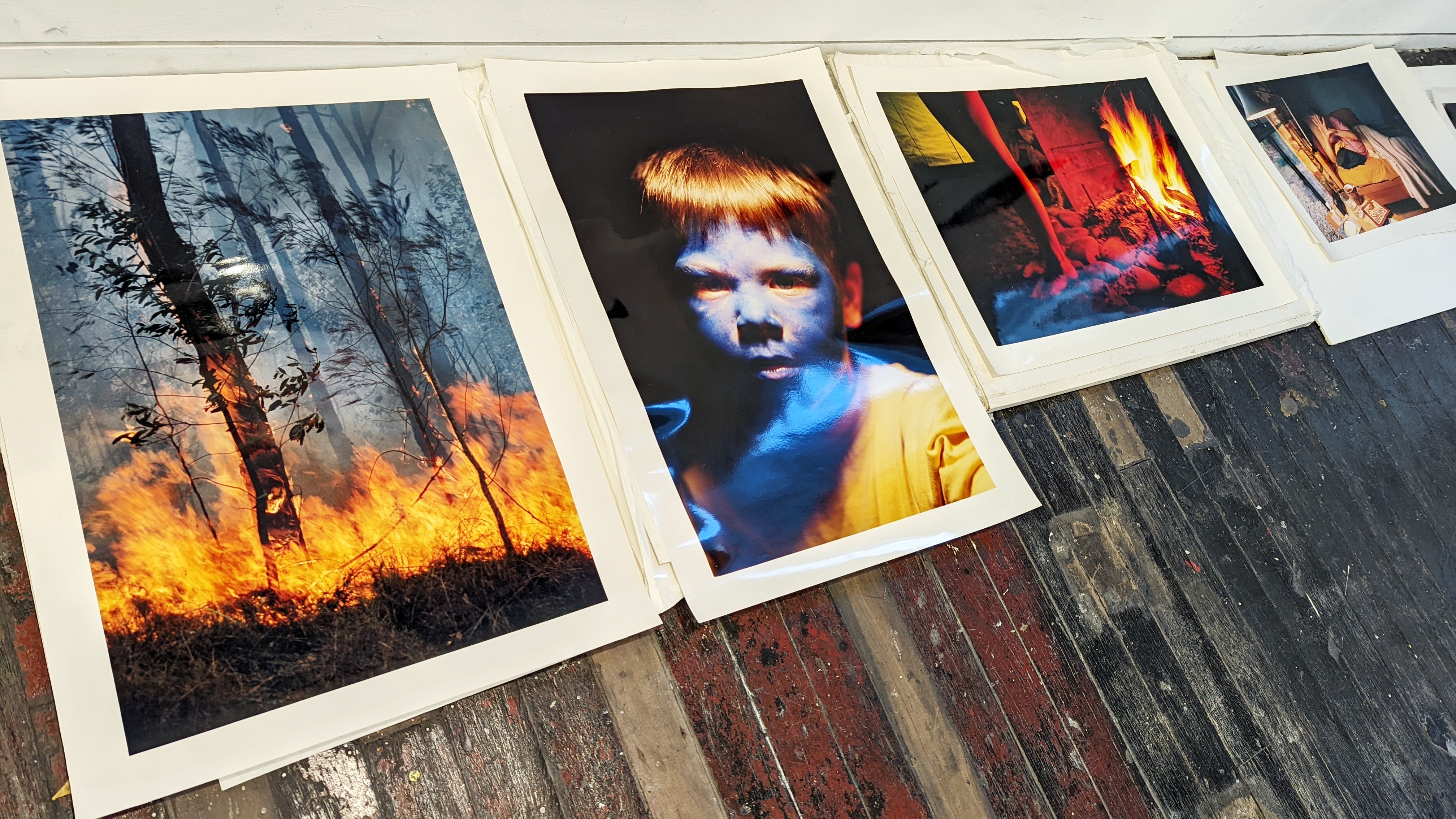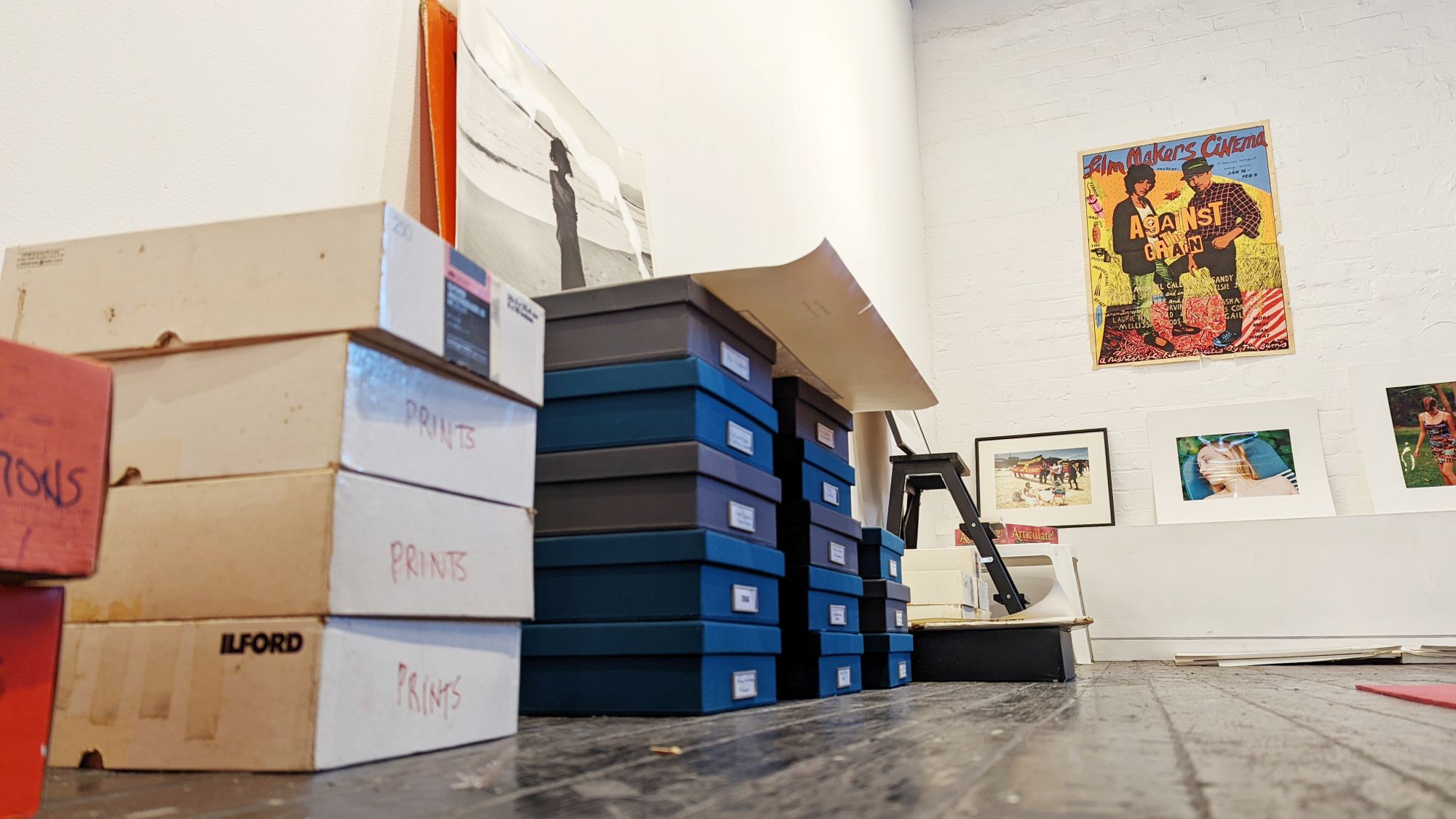 This will be a work in process. Throughout the exhibition photos and proofs will move/grow from the boxes to the walls.