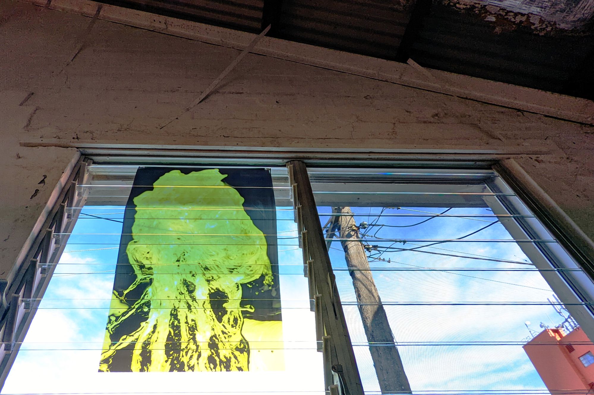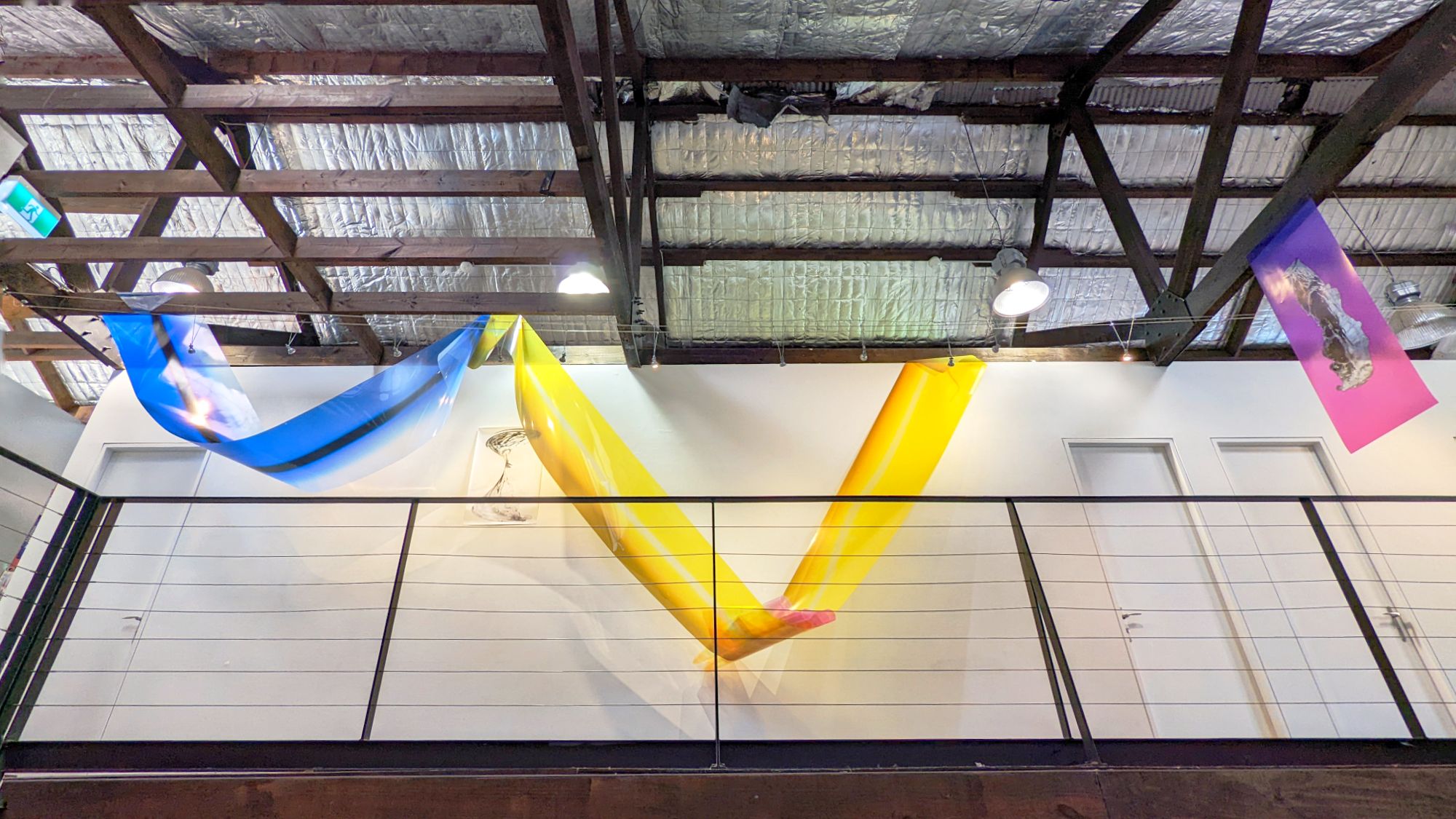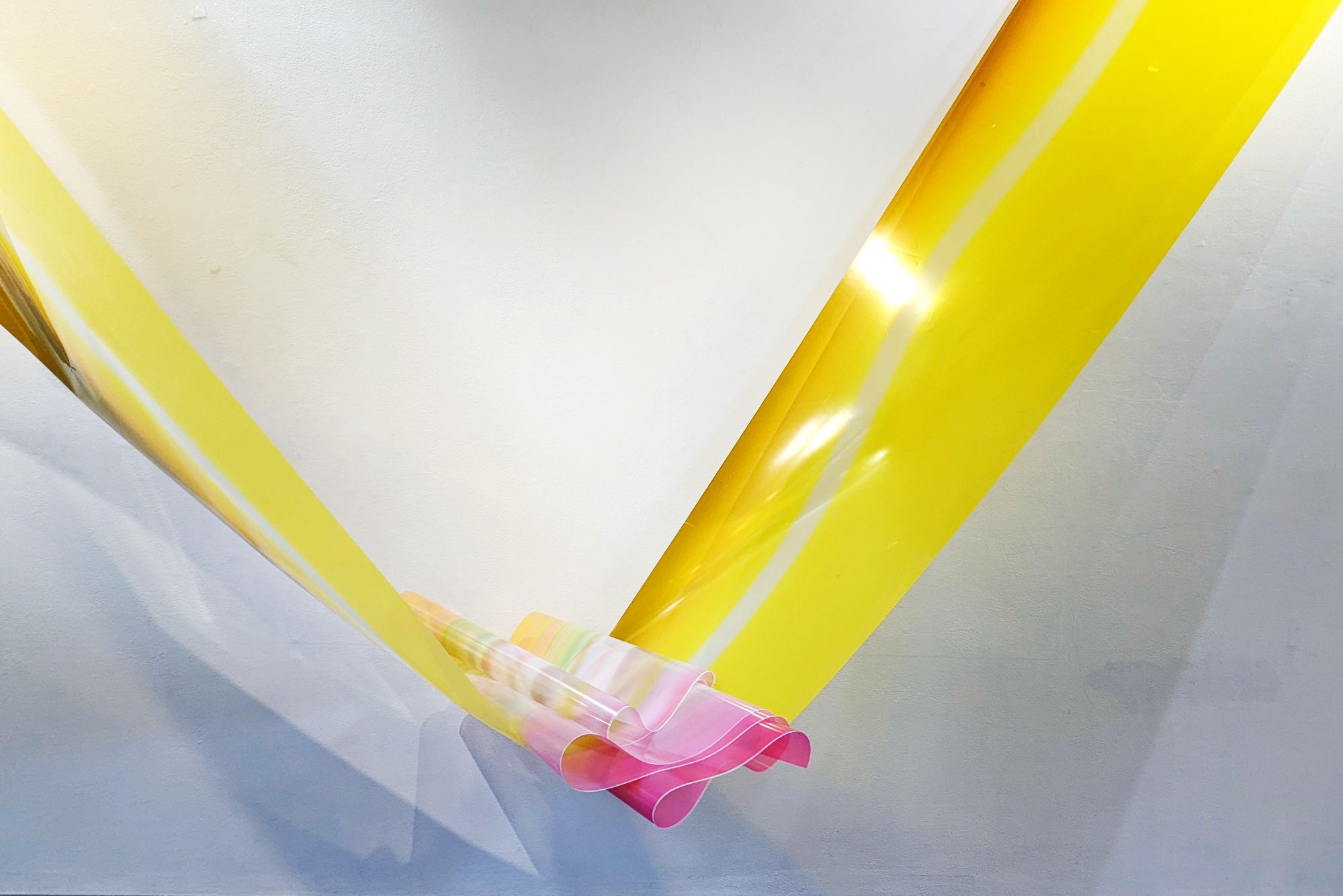 'Motion signalling' invites the audience into the studio as a body of experimental works are curated and continuously reconfigured each day. Treating the gallery as a studio the title refers to constant action and moments that signal a pause in studio practice.