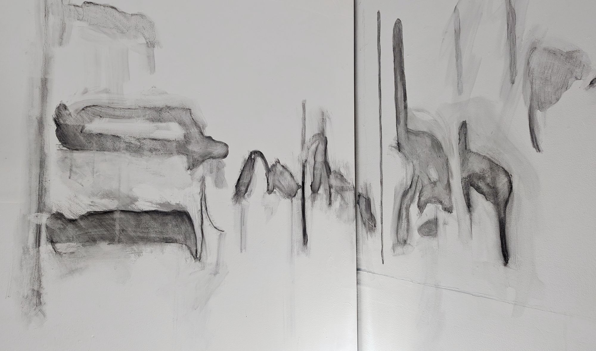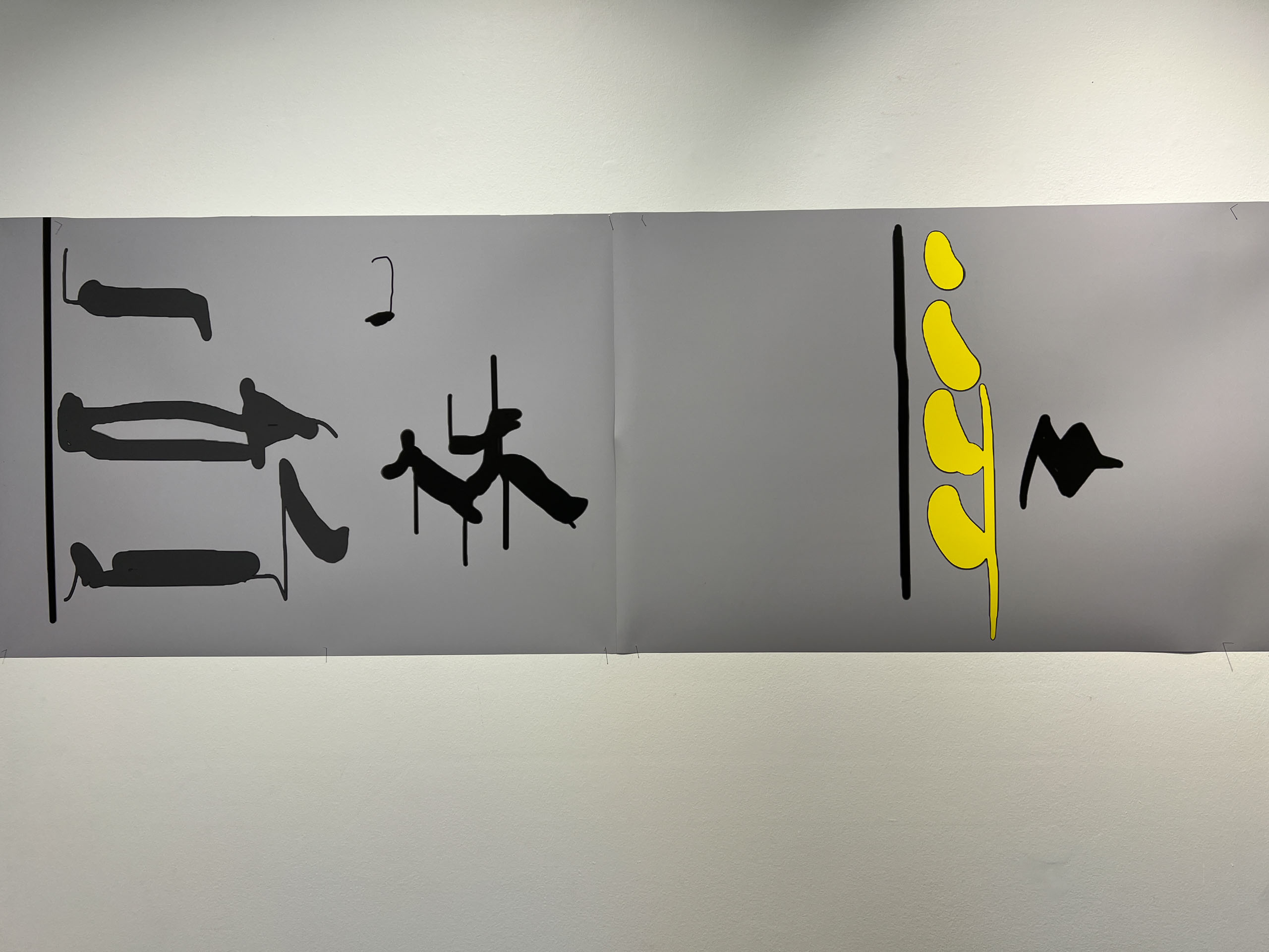 Murray and Burgess have recently won a CREATE NSW grant to commission music by composer Felicity Wilcox, "Call and Response", to be played in their installation at Blue Mountains Culture Centre Katoomba, December 2022- January 2023, for which this installation in the backroom is a trial run. The colours of the regent are grey, yellow, white and black.