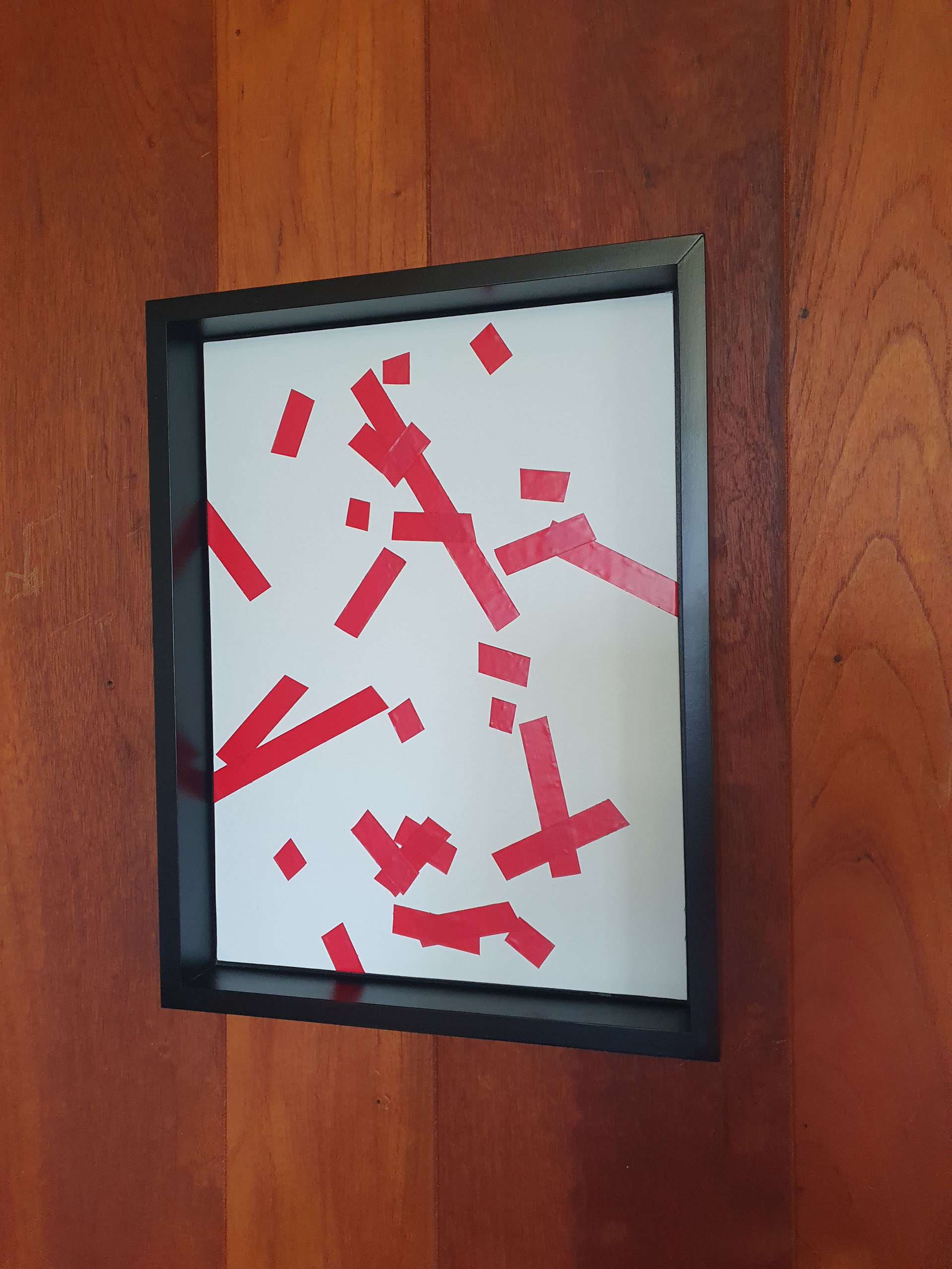 The works presented at Articulate vary from themes mapped out such as the ‘Line Series’ by Keighery, temporal painting based objectworks using paint-ish substances (coconut, food dyes, polenta, squid ink). Or collaborative punk works of Gruner and Keighery on art board, this shows’ using chocolate sauce. Gruner’s various works include early painted objects (electric tape reconsidering Mondrianns’ rendition of DeStijl or, other Arte Povera themes. What they do present in a new reading one that is NOT attempting to appropriate rather the opposite. Part of history ongoing, same but different.