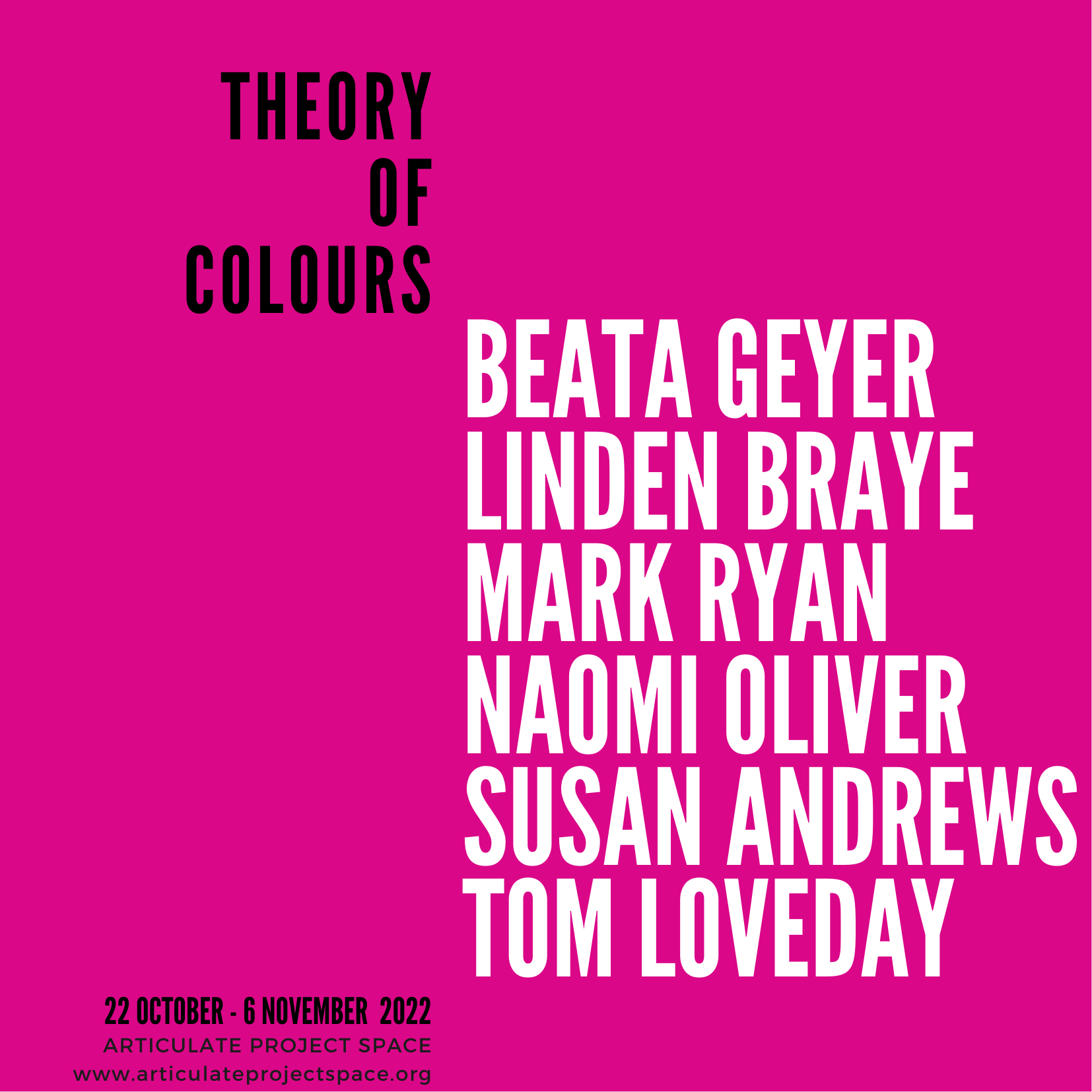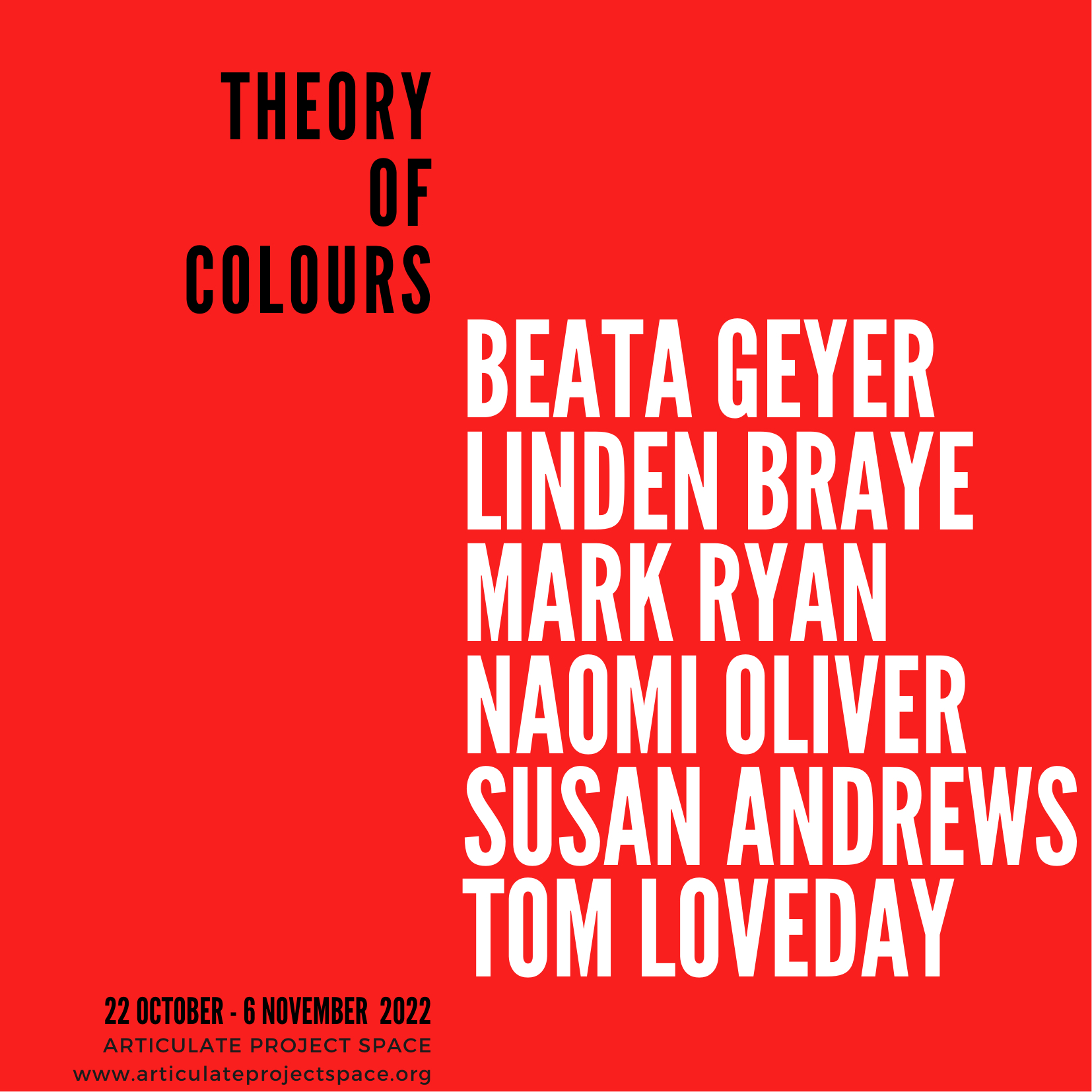 The title of the exhibition, borrowed from Goethe’s 1840s 'Zur Farbenlehre' is a provocation and a starting point for the conversations about colour, and a concept of ‘colour theory.’