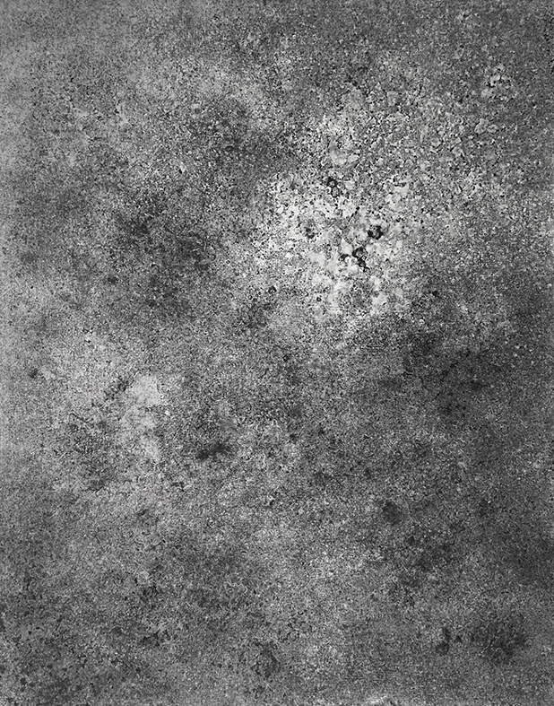 Acrylic, metallic powders, and meteorite dust (from Muonionalusta and Campo del Cielo) on canvas, 42 cm x 59.4 cm.