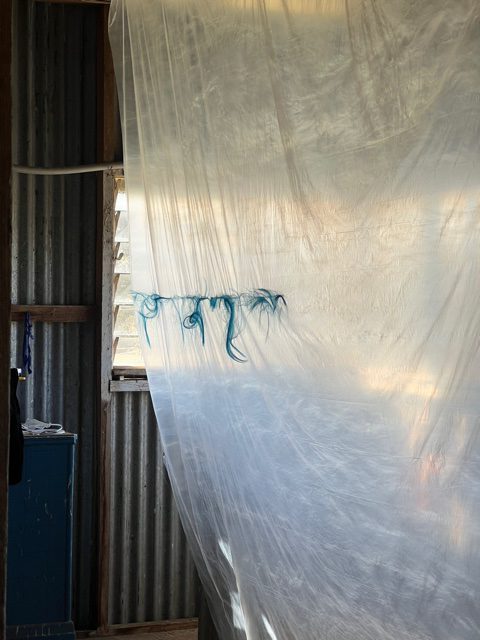 19. Judy-Ann Moule IMG 23B7 Just Enough plastic film and hair -dimensions variable.2023