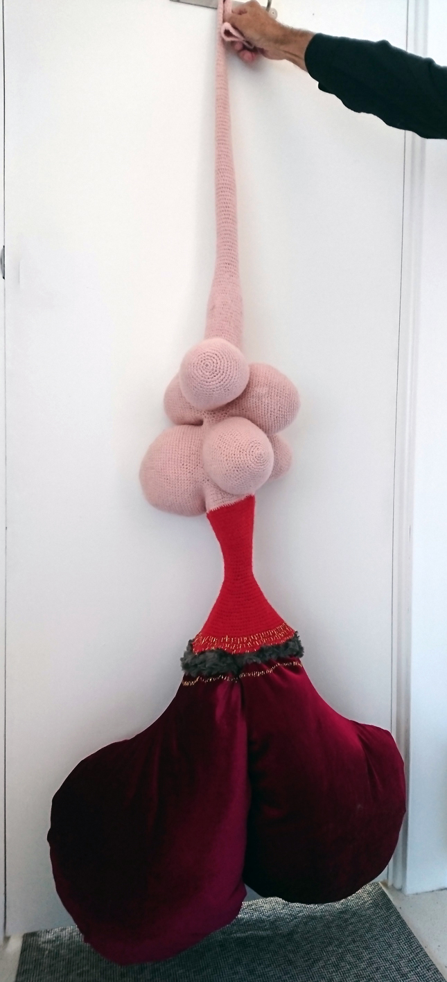 Kirsten Drewes questions traditional gender roles in this strange present. Her soft objects made of sexual but simultaneously deformed bodily forms, create ambiguous identities that unsettle the viewers. The contradictory feelings materialise the dream of a powerful self, confronted by the threat of societal circumstances.
