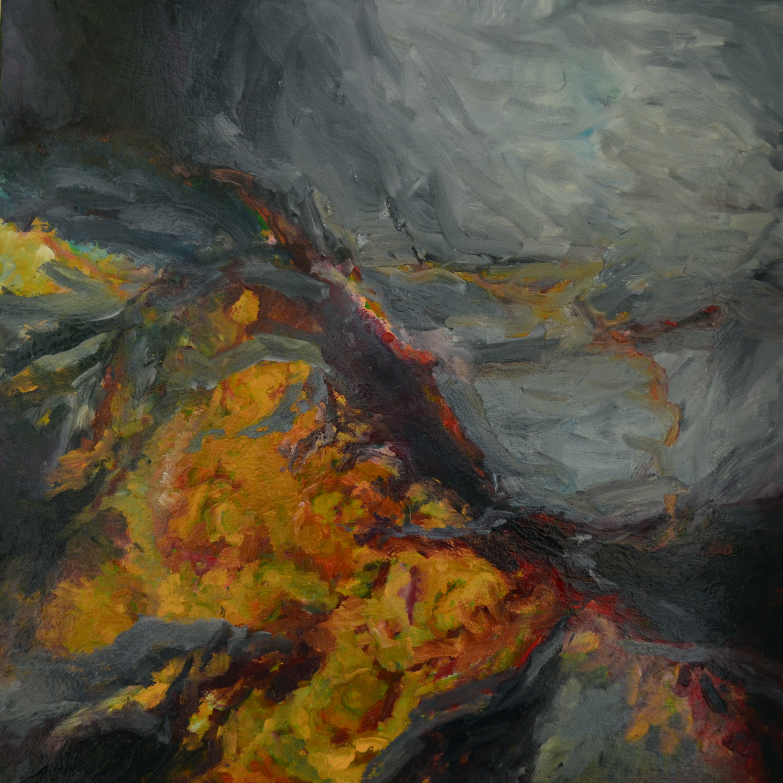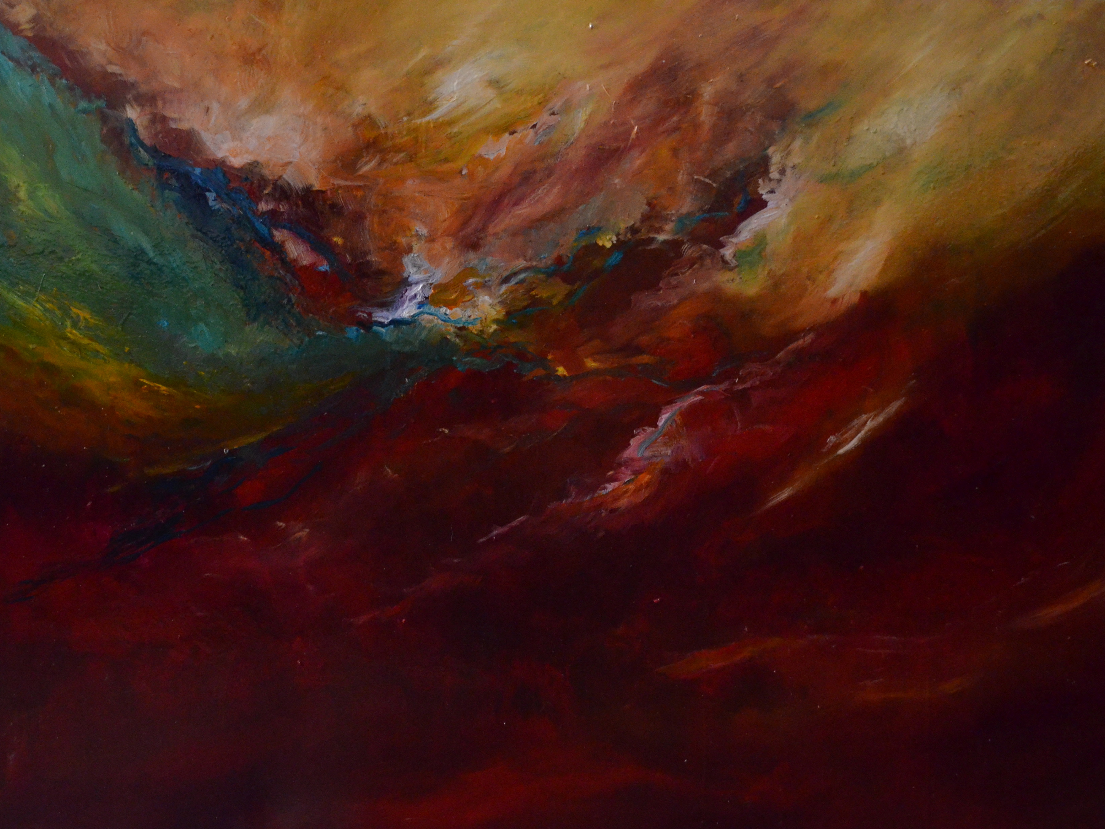 These abstracts are related to the landscape paintings of the Romantic movement of the early decades of the 19th Century. Nature was portrayed as violent and harrowing yet the belief was that through the “stunning of the soul, all that imprints a feeling of terror, leads to the sublime” (Denis Diderot).